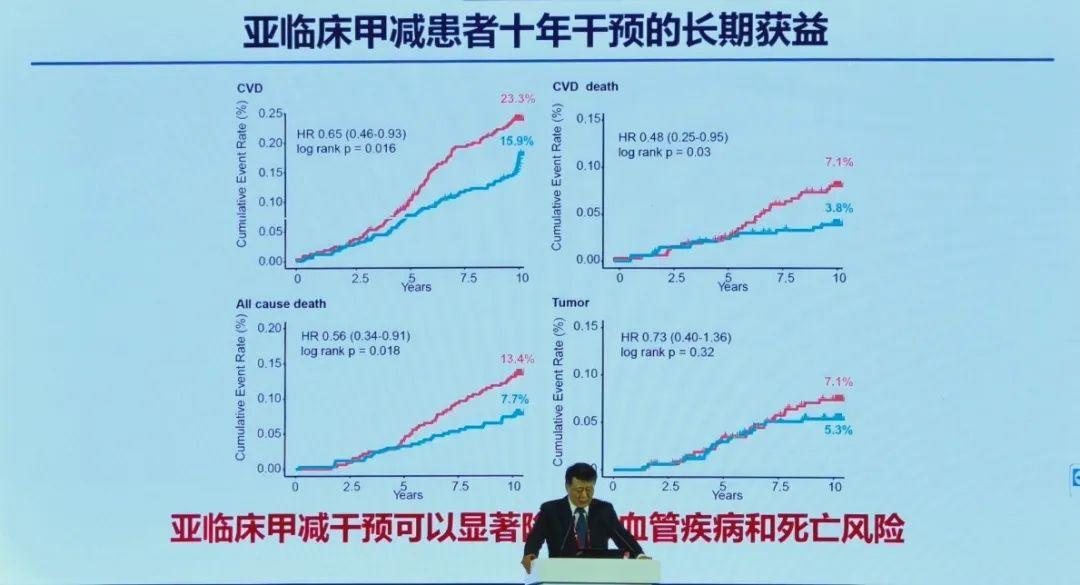 图5 轻度亚临床甲减患者十年干预同样可获得长期获益