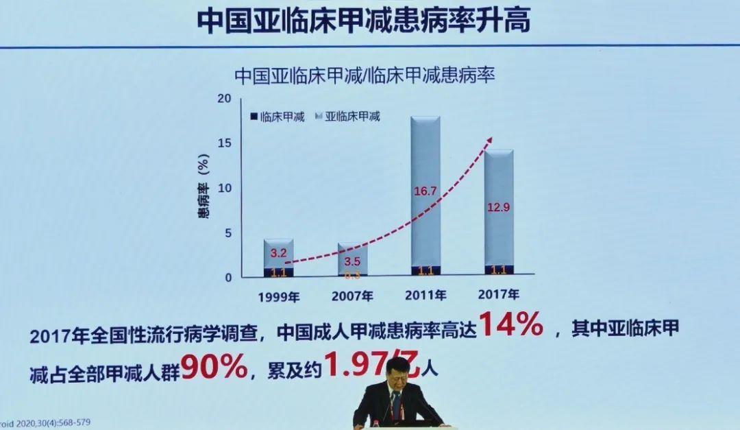 然而,近年来中国亚临床甲减及临床甲减的患病率持续升高,2017年全国性流行病学调查显示,中国成人甲减患病率高达14%,其中亚临床甲减占全部甲减人群90%,累及约1.97人,但知晓率仅为0.03%,极易被忽视。