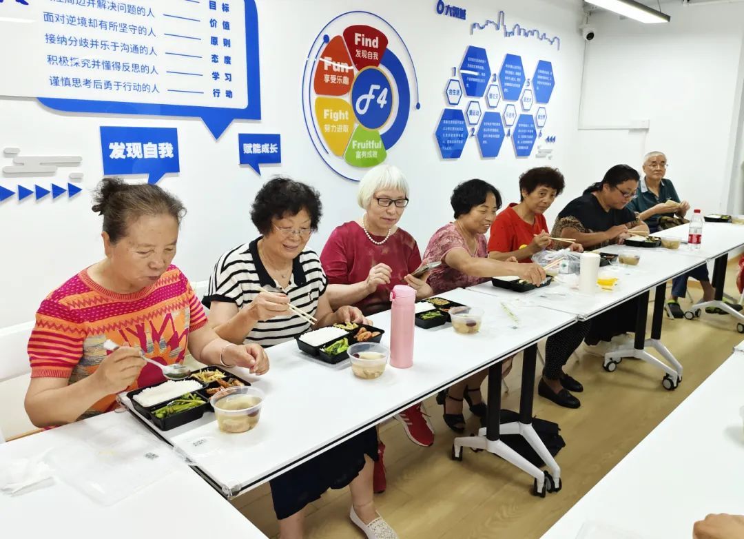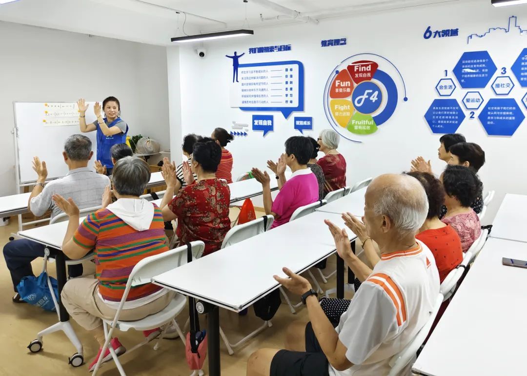 这项一周一期的社区公益日托服务以“一段操、一堂课、一餐饭”的形式开展,共开设四期。在这里,形体舞、器乐会、音乐游戏、手工DIY、知识讲座等丰富的课程不仅满足了老人的兴趣需求,更让他们在轻松愉快的氛围中感受到精神的充实。