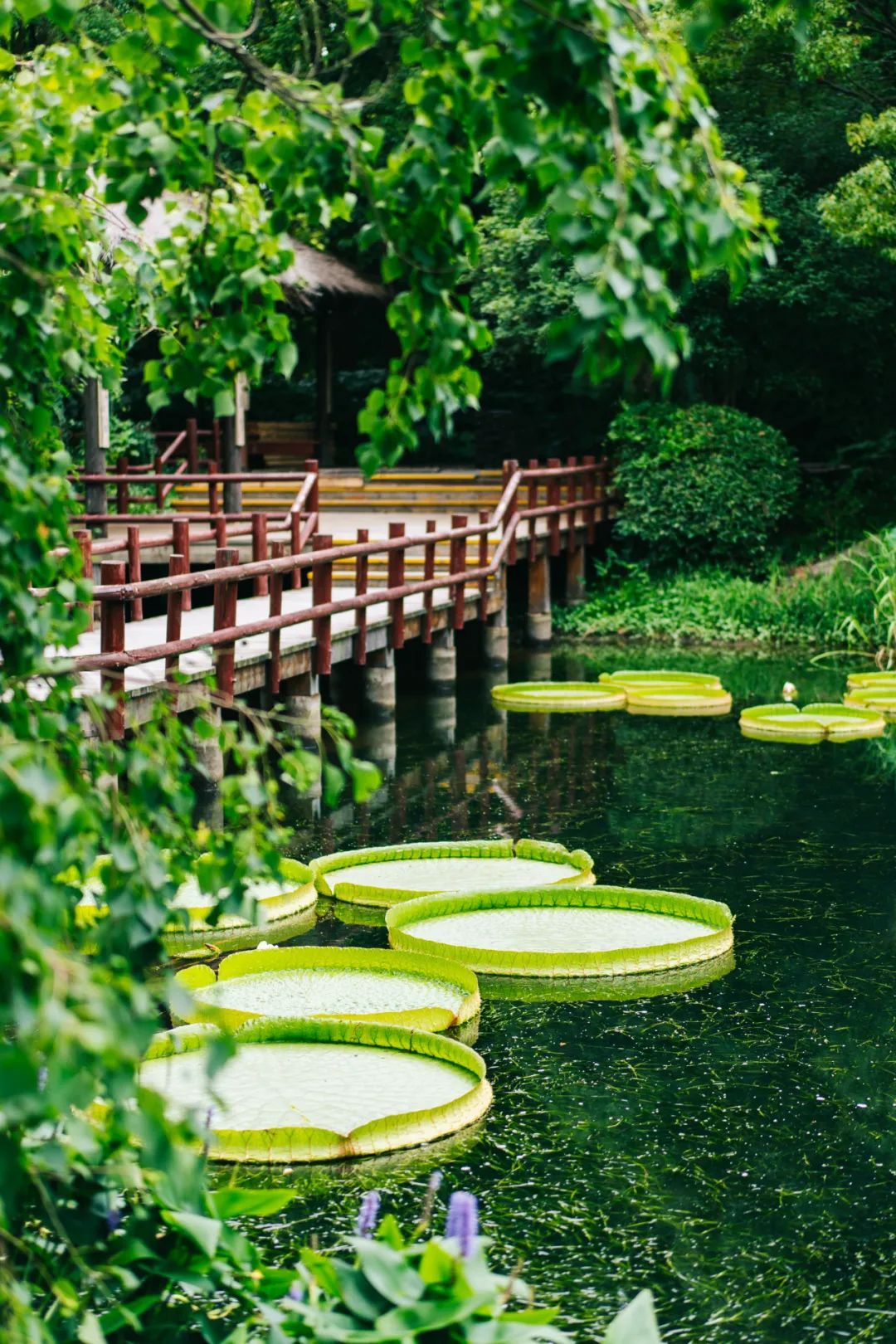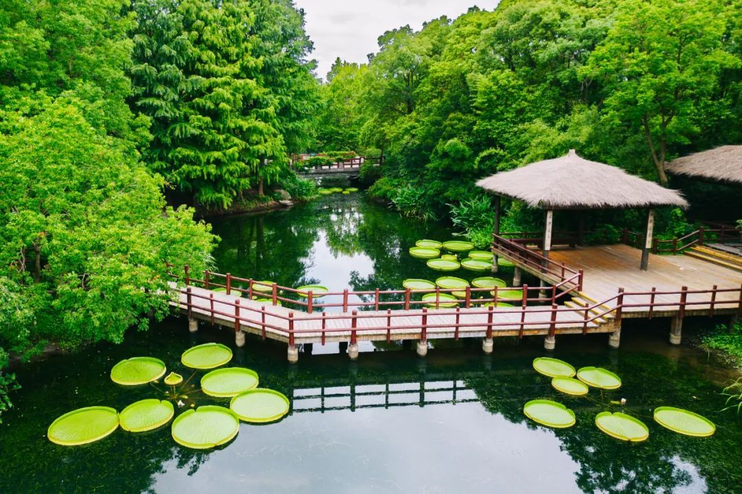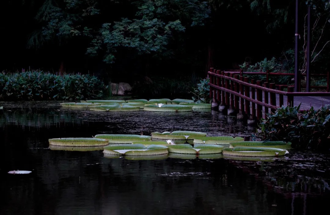 将湿生植物观赏区的水面装扮得分外清凉
