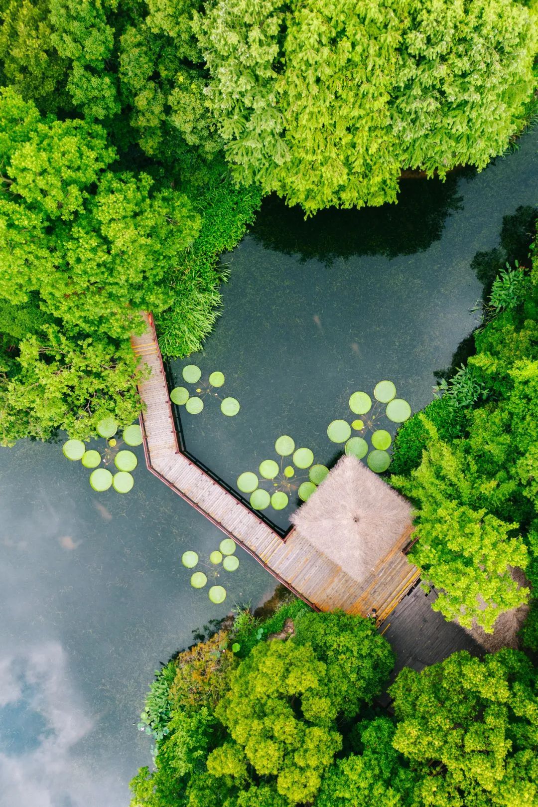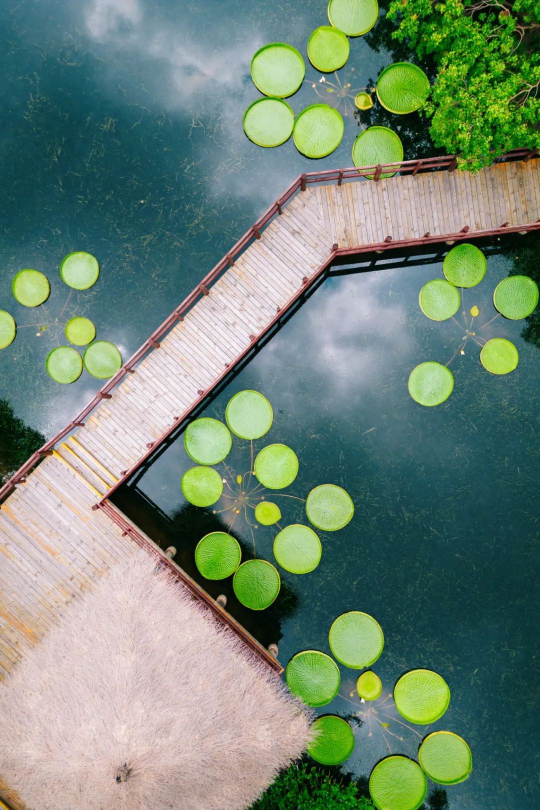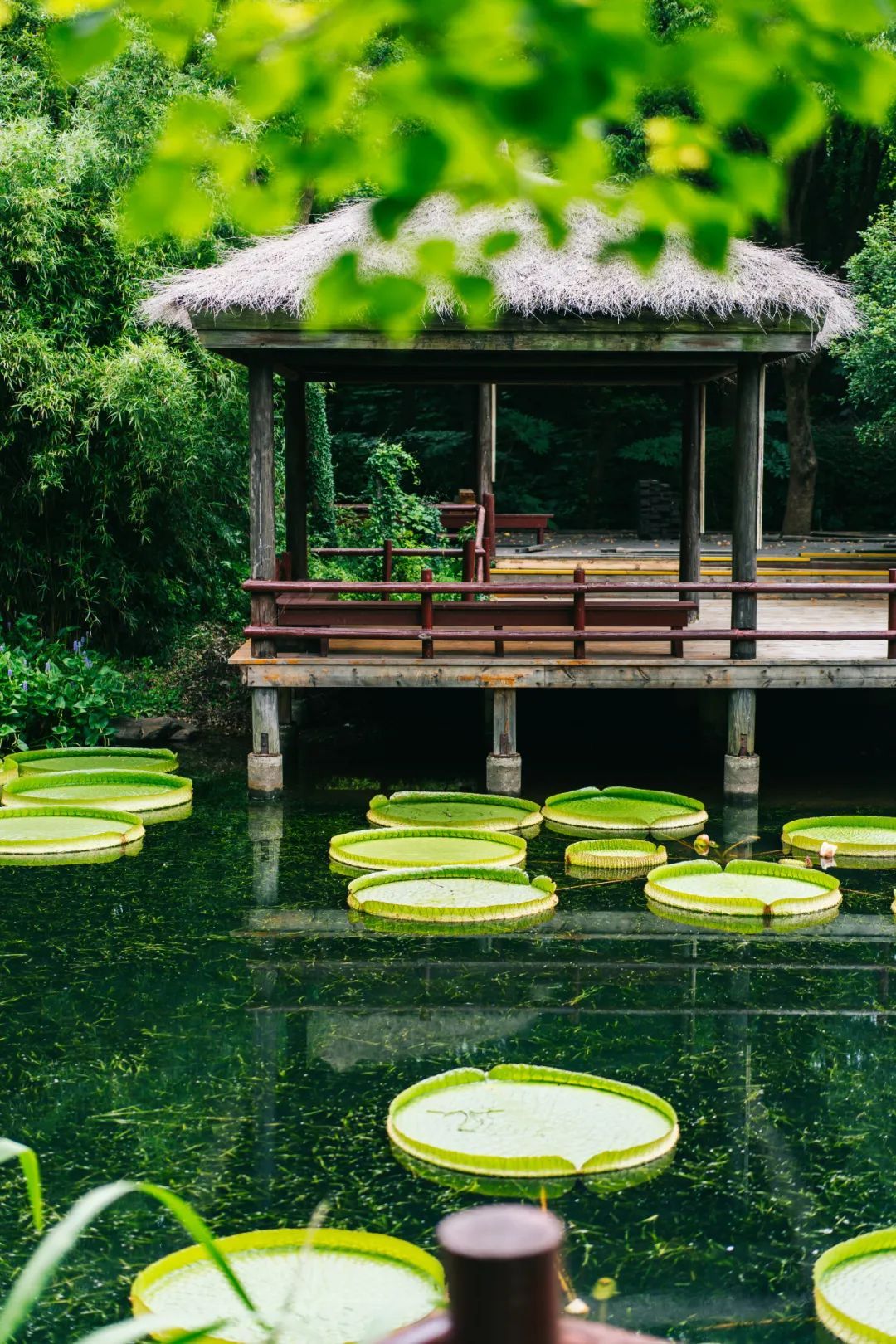 将湿生植物观赏区的水面装扮得分外清凉