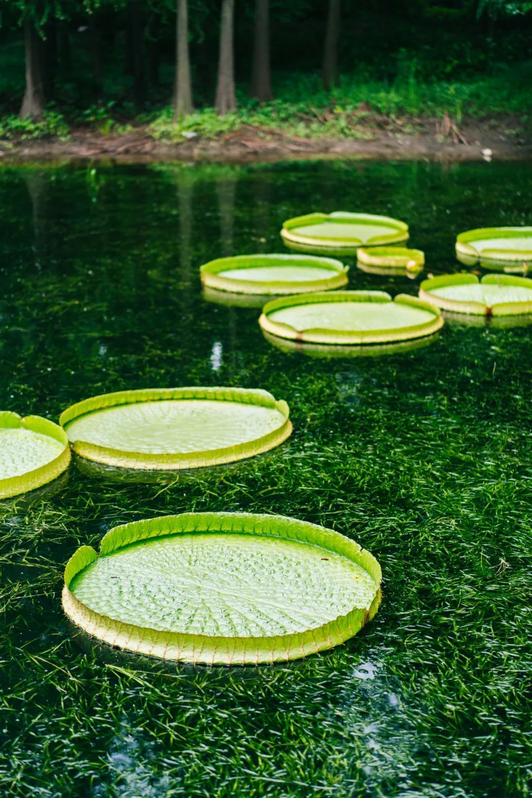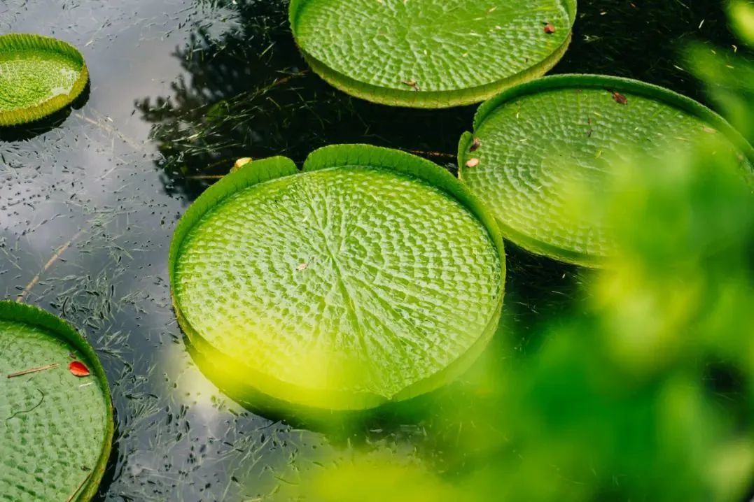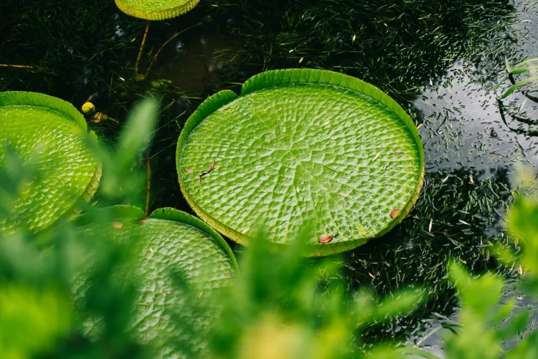 王莲大大的圆形叶片片片相连