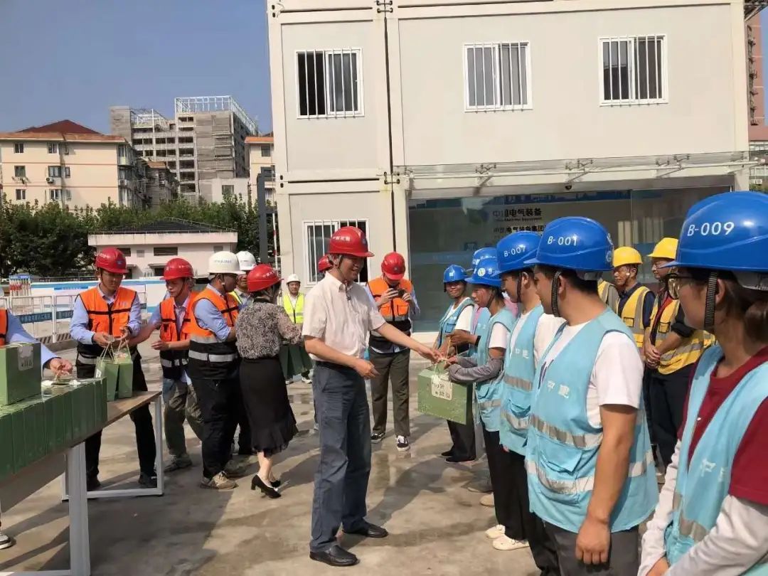 活动中,静安区建管工作党委负责人带队来到江宁路中国电气装备集团总部园区建设项目(地下工程)项目工地、蕃瓜弄小区旧住房改建工程(除桩基工程)项目工地、静安区江宁社区C050201单元047-3地块项目(除桩基)工地,为建筑工地一线工人送上了防暑降温物资。