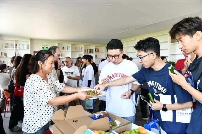 海协会副会长李文辉,上海市现代服务业联合会物流与供应链服务专委会名誉主任范鸿喜,浦东图书馆馆长曹忠,台湾创业青年、渔书创办人尚晓辉向上海乡育农业科技有限公司赠书。