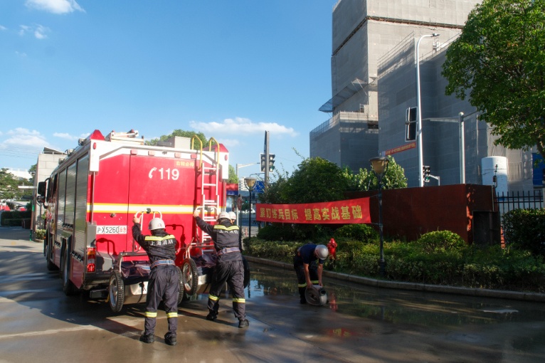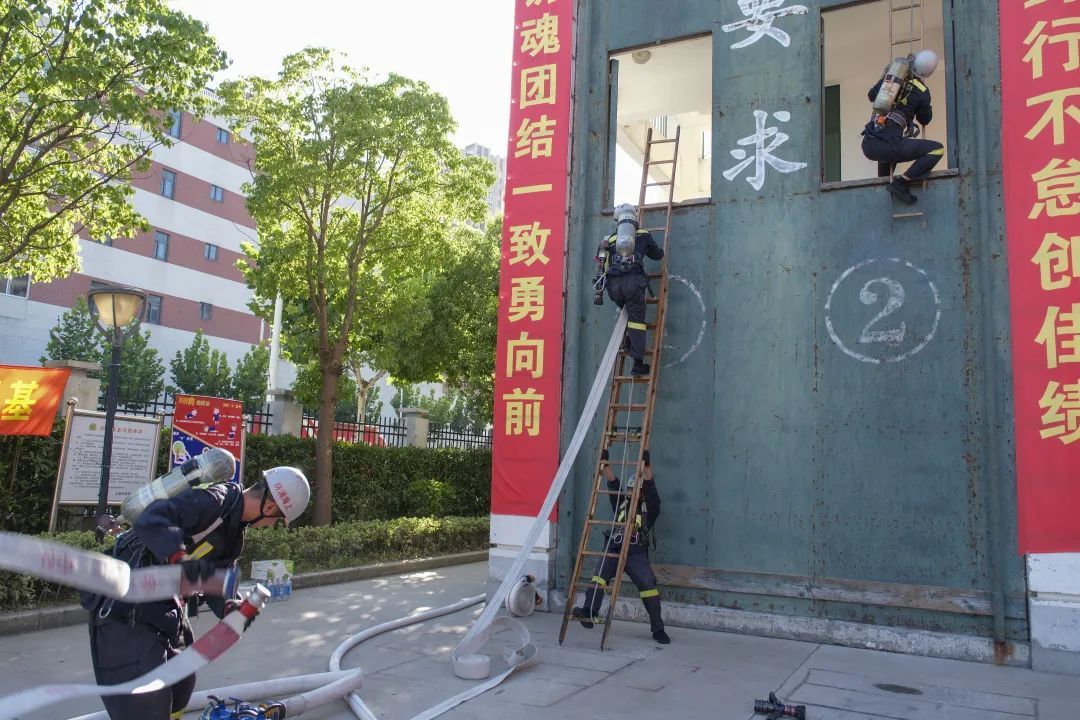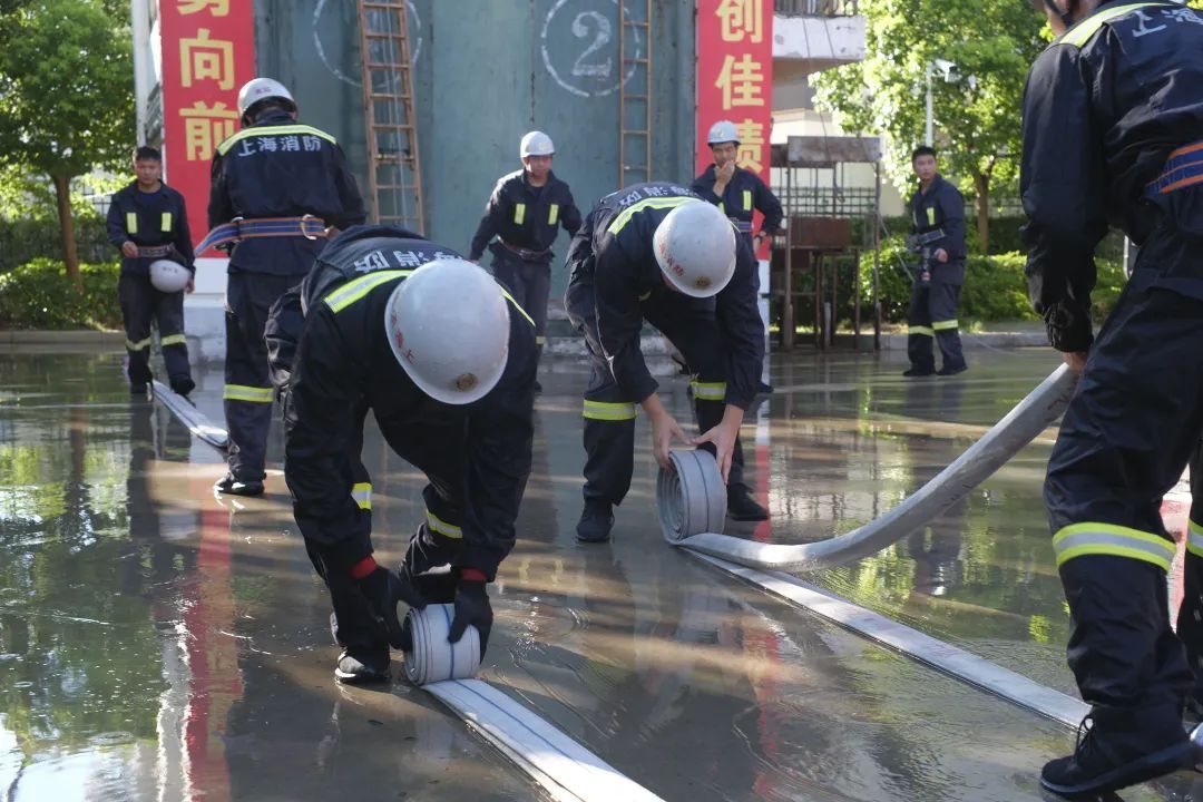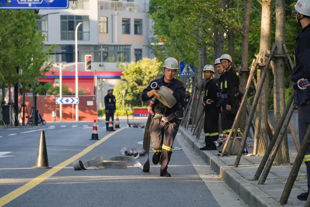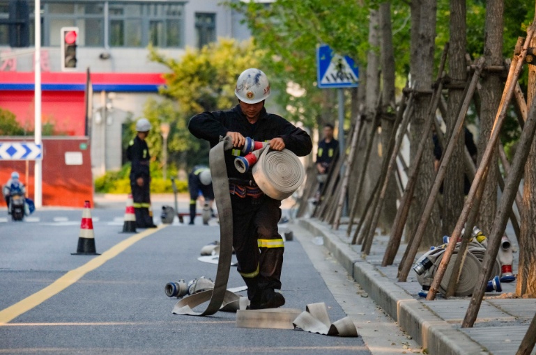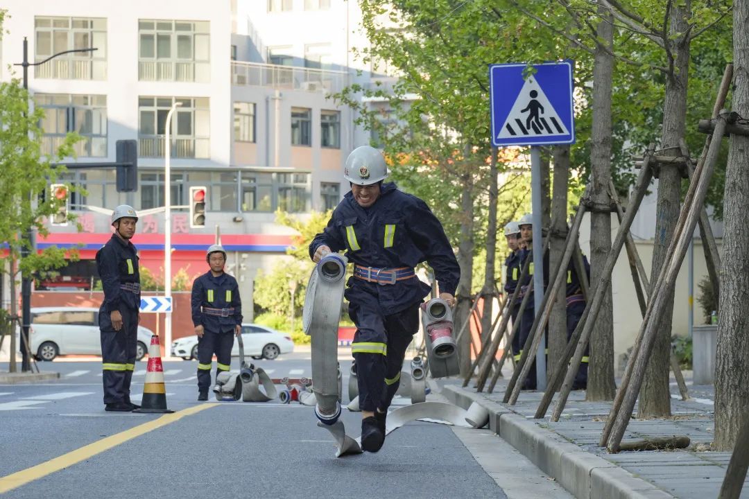 这项训练考验消防队员的体力和速度,通过不断训练,指战员可以在火灾现场更快速、更有效地进行火灾扑救。