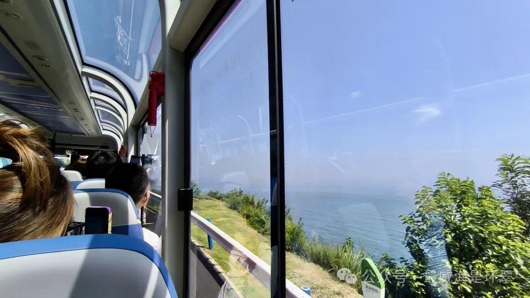 很快,车上就坐满了来自天南海北的游客。观光巴士缓缓驶出始发站,开启了本次环海路之旅。“各位旅客大家好,我们的观光巴士每次运行时长约60-90分钟,主打私人订制,原客原回……”一路上,随车管家贴心地引导游客乘车、观景。透过全景玻璃车顶和窗户,环海路两侧的绝美风景尽皆入目,半山半海的环海风光让人陶醉不已,游客们纷纷拿出手机拍照录影。