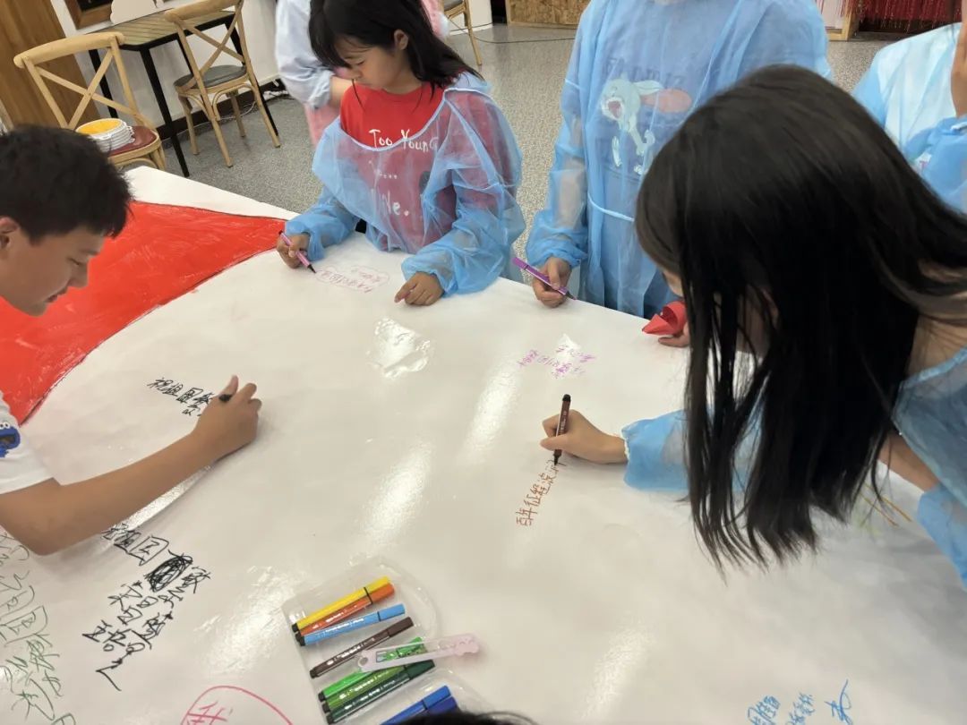 孩子们以手绘的方式绘制一面面生动的党旗,在实践中感悟,感受着对伟大的中国共产党的敬仰之情。