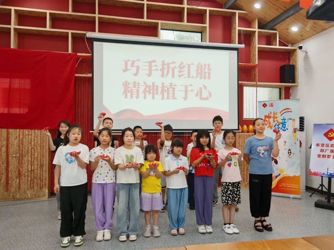 活动中,志愿者手把手教孩子们折小纸船,从上海石库门到嘉兴南湖,一艘小小红船承载着人民的重托、民族的希望。