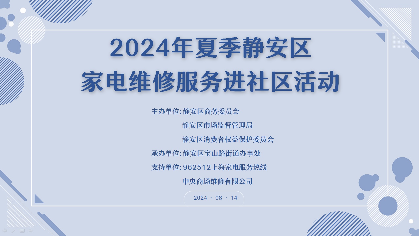 为贯彻落实2024夏季上海家电维修市场专项整治行动部署,8月14日,宝山路街道举办2024年夏季静安区家电维修服务进社区活动。