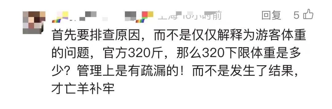 记者提出,园方在官网的项目设备介绍一栏内,只列出“身高1.3米以上”“体重要求:总重不超过320公斤”“承载人数4人”等内容,并无上述附加的安全告示和“注意事项”。园方听罢,再无回应。