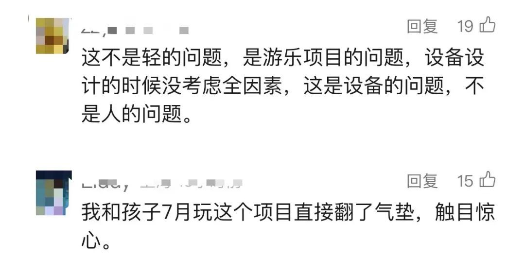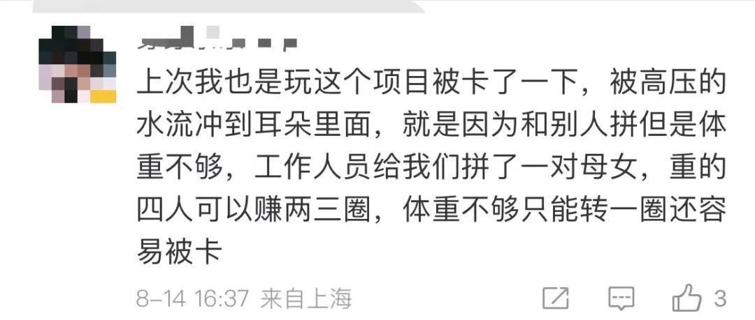 “我们调查下来,事故的原因可能是4名游客的总体重较轻,人员坐上浮筏后位置分布不均,导致浮筏在下滑时,缺少动力,卡在了设备的边缘。”