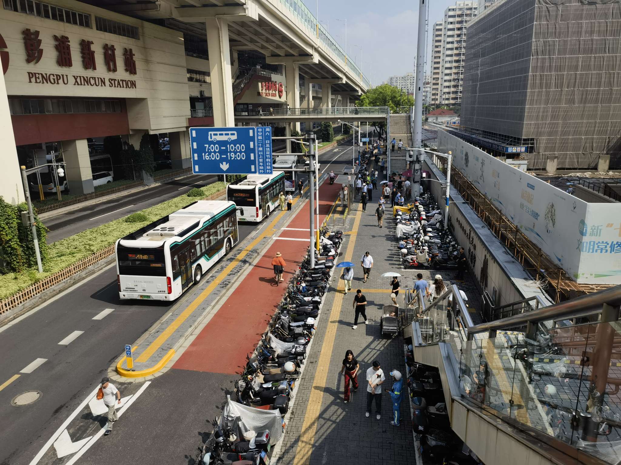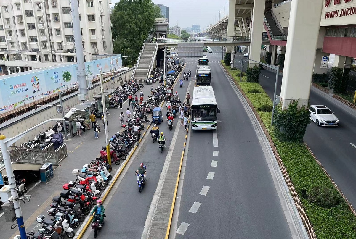 据悉,位于轨道交通1号线彭浦新村地铁站1号和2号出入口之间共和新路闻喜路东侧公交站,停靠的公交线路多达13路,早晚高峰在此公交站搭乘公共交通的人流量非常大。改造前,此处公交站侯车亭位于人行道靠里侧,乘客需要穿越大量停靠着的非机动车才能上下车,加之候车岛宽度仅1米,出行不便且存在一定的安全隐患。