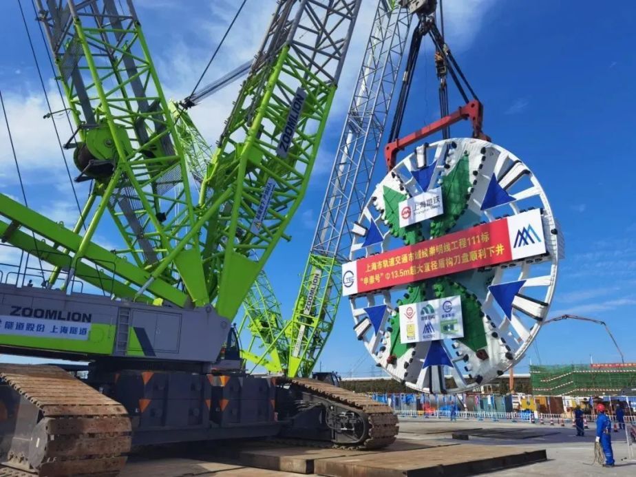 2022年11月6日,“申崇号”大盾构刀盘下井拼装,于2023年3月21日始发推进。