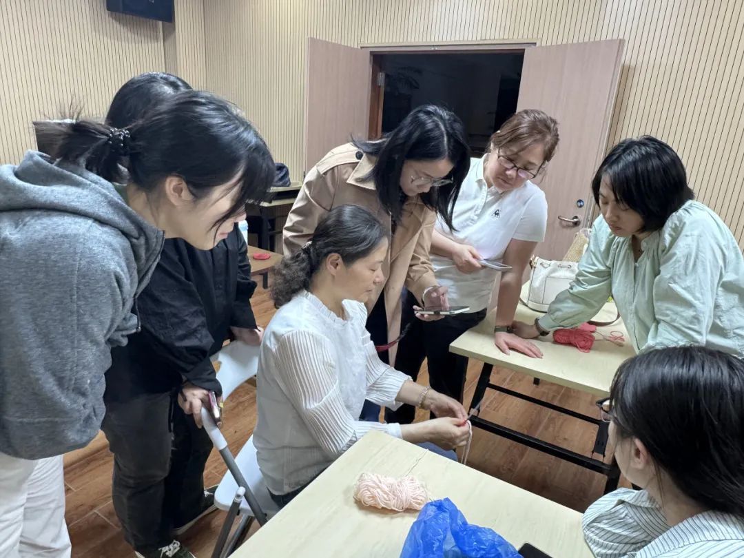 对我而言,教授莘庄钩针编结也是一次新奇的体验——我的身份从“学生”转换为“老师”。在教授技艺的过程中,需要根据学员们的不同水平和需求,来制定合适的教学计划和内容。我不仅要讲解基本的编织技巧和方法,还要引导学员们发挥自己的想象力和创造力,创作出具有个性和特色的作品。学员的热情和专注让我更加坚定了传承钩针编结技艺的决心。