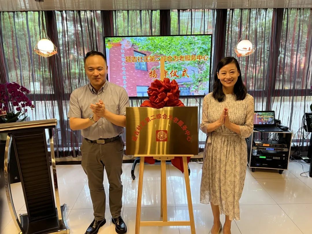 座谈交流会现场,延吉社区第二综合为老服务中心还正式揭牌,标志着中心正式投入使用,后续将全力服务于周边居民,提高群众社区养老生活的获得感和幸福感,推动杨浦区“15分钟养老服务圈”布局进一步优质均衡。