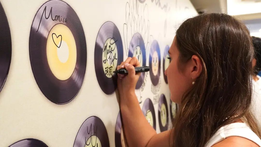 在林肯爵士乐上海中心门口,美国学生们在签名墙上写下自己的愿望,“音乐让我们在一起”的主题拉近了同学们的心。“林肯爵士乐中心总部在美国,是一家知名的爵士乐机构,所以今天特地来上海看看林肯爵士乐在上海的发展。”一位美国同学告诉记者,此次暑期参访活动安排了丰富多彩的文化体验,成为了美国学子了解中国、沟通上海的“桥梁”。