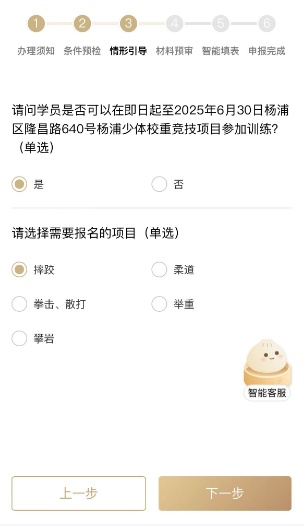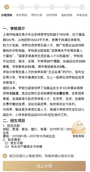 日前 在奥运拳击女子50公斤级决赛上 上海杨浦运动员吴愉 全力拼搏、夺得金牌 她的火力“拳”开 让重竞技项目得到更多关注 也让不少杨浦小囡向往世界舞台 现在,圆梦的机会来了! 2024年杨浦重竞技项目 开始招生啦 杨浦区少体校持续招生 重竞技组选拔正式拉开帷幕 热爱竞技的你,机会来了! 为了深入贯彻国家对青少年体育发展的高度重视,杨浦少体校重竞技组现面向全社会招募对重竞技充满热情的潜力青少年。自8月9日起,“随申办”市民云杨浦旗舰店“好办”专题,增设了“杨浦少体校重竞技项目报名”,家长只需访问该专题,即可轻松获取全面的招生指南与详细信息,并直接在线完成孩子的报名。 招生简章 杨浦少体校重竞技组主要由摔跤、柔道、拳击、散打、举重、攀岩、自行车等项目组成。其中摔跤、柔道、拳击项目始终处于上海市领先地位。 上海市第十七届运动会上,摔跤、拳击两项位列全市奖牌榜第一,柔道位于全市奖牌榜第二。是本届市运会杨浦少体校夺金数最高的项目组。 杨浦少体校重竞技组为国家培养输送了大批优秀人才,其中—— 柔道运动员姚玉婷荣获2009年新西兰世界杯女子70kg冠军和第十二届全运会柔道女子70kg冠军。 拳击运动员吴愉荣获2023年全国世界女子拳击锦标赛50-52kg冠军,巴黎奥运拳击女子50公斤级金牌。 摔跤运动员苗婕荣获亚运会女子柔术52kg银牌。 自行车运动员张海奥荣获第19届亚运会场地自行车男子团体追逐赛银牌。 跨项输送赛艇运动员周旋荣获2017年男子四人艇全国冠军,2018年亚洲杯荣获男子四人艇季军。 此外,还有一大批为社会做出贡献的公安,特警和遍布各个中小学的体育教师。 攀岩作为一项既能全面提高身体综合素质,又能很好增强意志品质的新兴运动,在20世纪50年代兴起于欧美后迅速传播。1987年,攀岩进入中国,经历了四十载耕耘洗礼,中国攀岩有了飞跃式的发展,现在攀岩已经进入全运会、亚运会、青奥会和奥运会赛事体系,关于青少年攀岩发展培育体系也越来越完善。 叶岩攀岩俱乐部自2021年与杨浦少体校建立战略合作,成立“杨浦区青少年攀岩队”,2022年上海市第十七届运动会取得青少年攀岩速度第一名、第二名、 第四名、第七名的好成绩,2023年上海市青少年锦标赛攀岩速度、攀岩难度、攀石、全能项目中都获得多项前八名,2023-2024学年上海学生攀岩锦标赛上小学组获得一项第四,两项第六名。 为更好发展杨浦重竞技事业,选拔、培养和输送优秀的重竞技后备人才,即日起常年开设报名通道,满足喜爱重竞技项目的适龄青少年参加锻炼的愿望。 1、招生年龄: 摔跤、柔道、拳击、散打、举重: 2011年1月—2016年12月出生 攀岩: 2013年1月—2017年12月间出生 2、报名要求: (1)男女不限 (2)有本市户籍或本市学籍 (3)无不适合运动疾病或四肢有骨折旧伤病史 3、培训时间和地点: 摔跤: 周五下午3:00-5:30、周六周日上午9:00-11:30,杨浦区隆昌路640号杨浦少体校摔跤柔道馆两楼,张教练。 柔道: 周五下午3:00-5:30、周六周日上午9:00-11:30,杨浦区隆昌路640号杨浦少体校摔跤柔道馆两楼,周教练。 拳击、散打: 周二至四晚18:30-20:00、周五下午15:30-17:30、周六周日上午9-11:30,杨浦区长阳路3399号拳击馆(白洋淀足球场内),张教练。 举重: 周五下午3:00-5:30、周六周日上午9:00-11:30,杨浦区隆昌路640号杨浦少体校举重馆,陈教练。 攀岩: 周一至周日(每周要求2节课),杨浦区国顺东路800号西楼212A叶岩攀岩馆,刘教练。 4、报名时间: 即日起至2025年6月30日 5、其他事项: 攀岩队报名为线上报名及线下面试,线上报名成功后,岩馆将对报名信息进行初审,根据报名顺序先后通知面试时间;线上报名仅作为预报名,实际录取以通知结果为准。 6、报名方式: 扫描下方二维码进入“随申办”市民云“杨浦少体校重竞技组报名”事项进行报名。 (报名二维码) 报名详细操作步骤 第一步:办理须知。详细了解招生简章后点击“我已阅读”,进行“线上办理”。 第二步:条件预检。系统将自动判断您的孩子是否符合报名要求,符合即可进行下一步操作。 第三步:情形引导,根据实际情况勾选,点击“下一步”。 第四步:智能填表。家长填写基本信息后即可生成申请表,点击“提交”即报名成功。