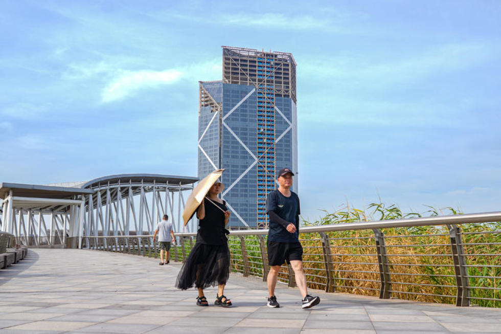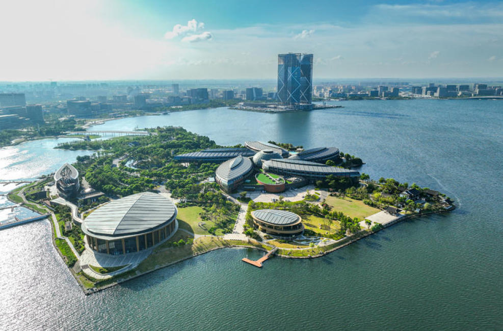 曾经空荡的滴水湖西岛,两座200米高的双子塔楼拔地而起;曾经荒芜的滴水湖北侧,围成一圈的“荣耀之环”已经悬浮于空中;曾经略显寂寥的环湖一路和环湖二路,现在已有了高低错落的天际线,并有了热闹的烟火气——港城广场、湖滨天地、临港新片区国际人才服务港、新辰临港中心等先后建成,夹杂其中的还有环湖公园带、二环城市公园带、图灵广场、最美临湖图书馆,以及越来越多的品质餐饮、咖啡等……
