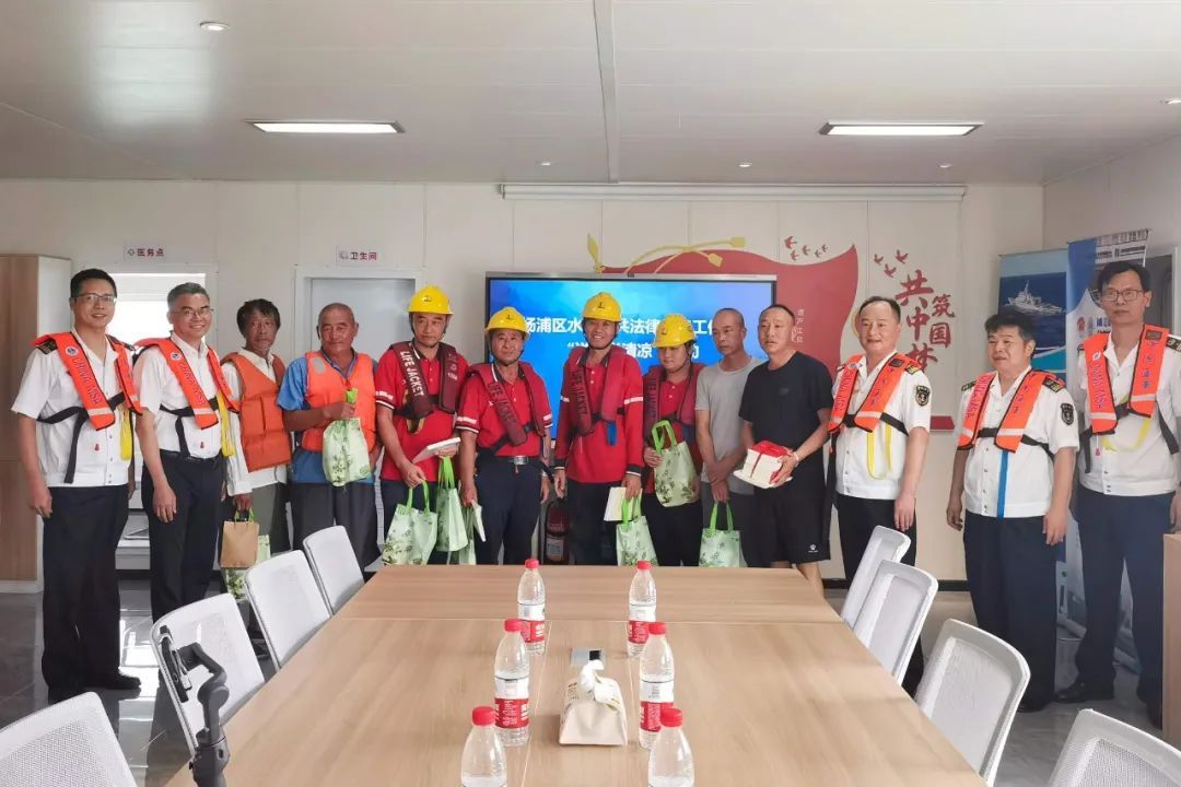 为进一步提升杨浦区水上公共法律服务工作站服务能力,提高船员知晓度和满意度,8月20日下午,杨浦区司法局联合杨浦海事局在水上公服站开展“送法送清凉”活动。杨浦区司法局党委书记、局长邓远见,杨浦海事局党委书记、局长朱国兵参加活动,并为船员代表送上普法书籍、杨浦区公共法律服务地图、防暑降温药品等“法治大礼包”。
