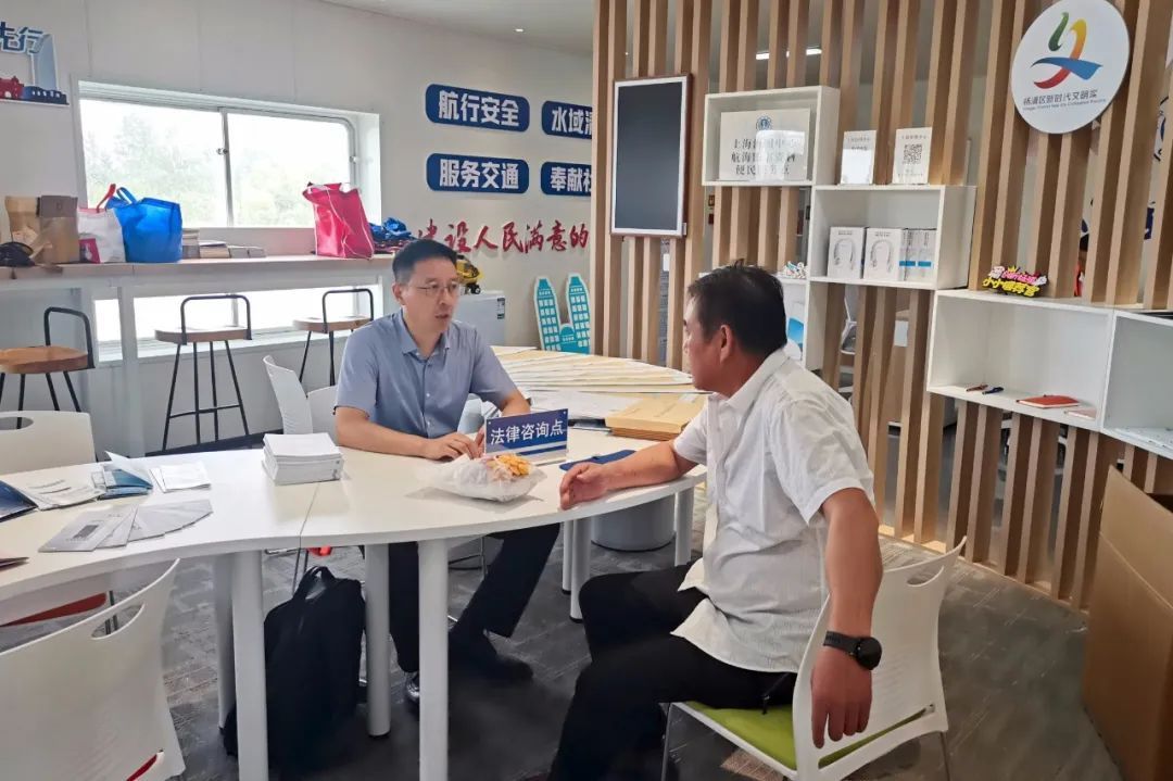 在活动现场,水上公服站公益服务律师、上海航博律师事务所主任张念宏为船员提供法律咨询服务,解答船员、船员家属在日常生活工作中遇到的婚姻家庭矛盾、劳动纠纷、侵权赔偿等方面的法律问题。