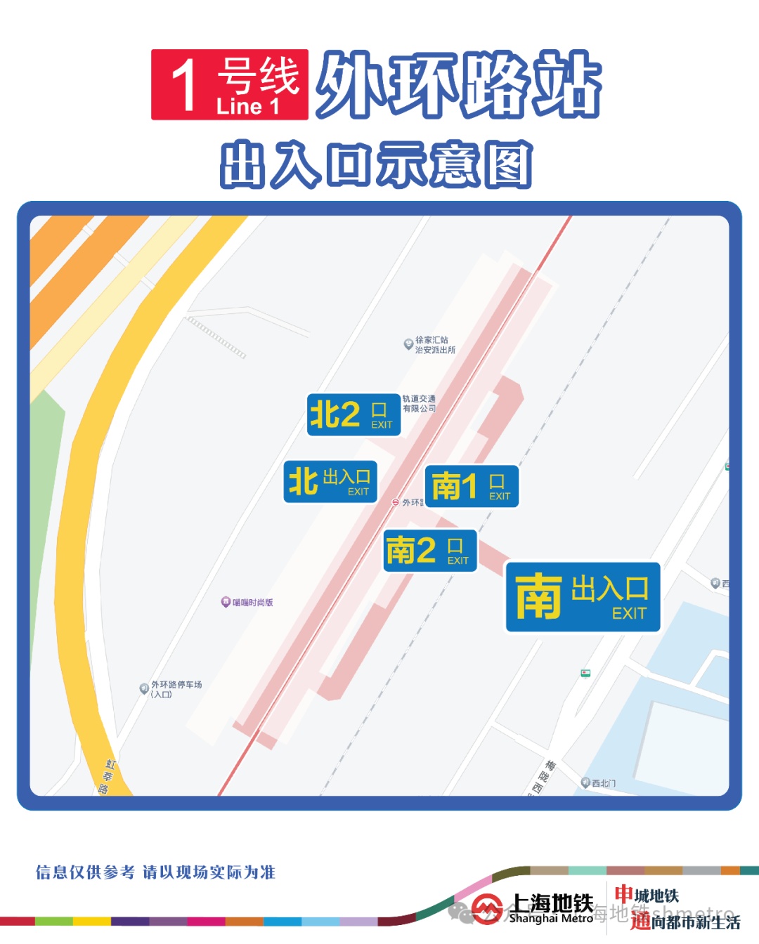 因铁路扩线改造施工已完成,1号线外环路站过街通道南出入口已于8月21日恢复启用。