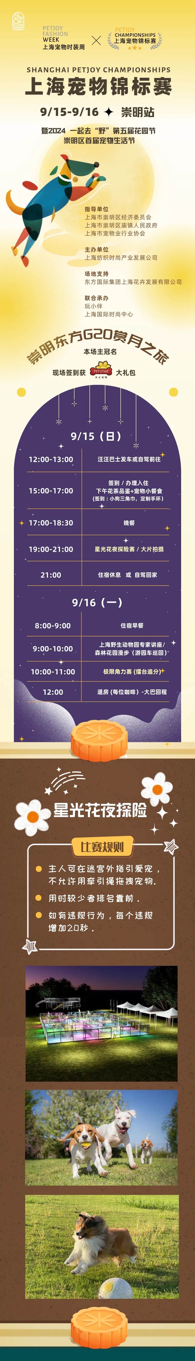 作为八大重点IP活动之一,崇明首届宠物生活节将于9月在庙镇举办,现向全市征集“毛孩子”家庭,一起置身无边草地、田野花海的“藏红花之乡”,参与上海宠物锦标赛-崇明站活动。一起来崇开启星光花夜探险、极限角力竞技、地标美食品鉴的奇妙体验之旅。赶快带着“毛孩子”来崇一起“野”吧!