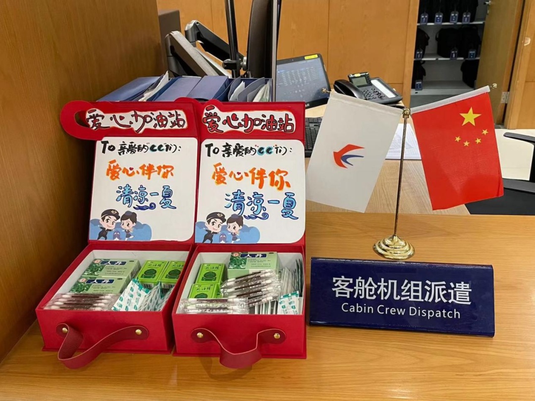 作为一名新乘,在每天和前辈们一起忙碌、学习业务知识时,总能在他们脸上看到亲切的微笑。客舱部的机组派遣席位上,还能看到大家一起做的爱心加油站,让我在每次领任务的时候都能感受到温暖与感动。