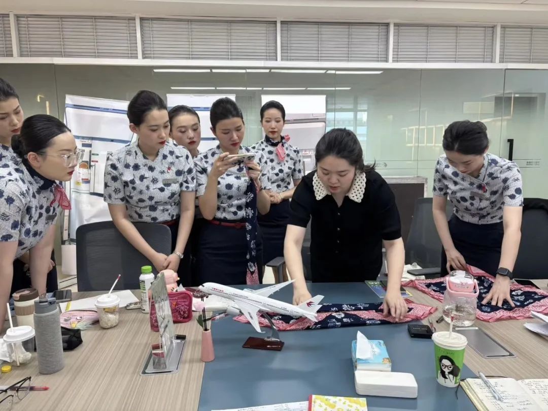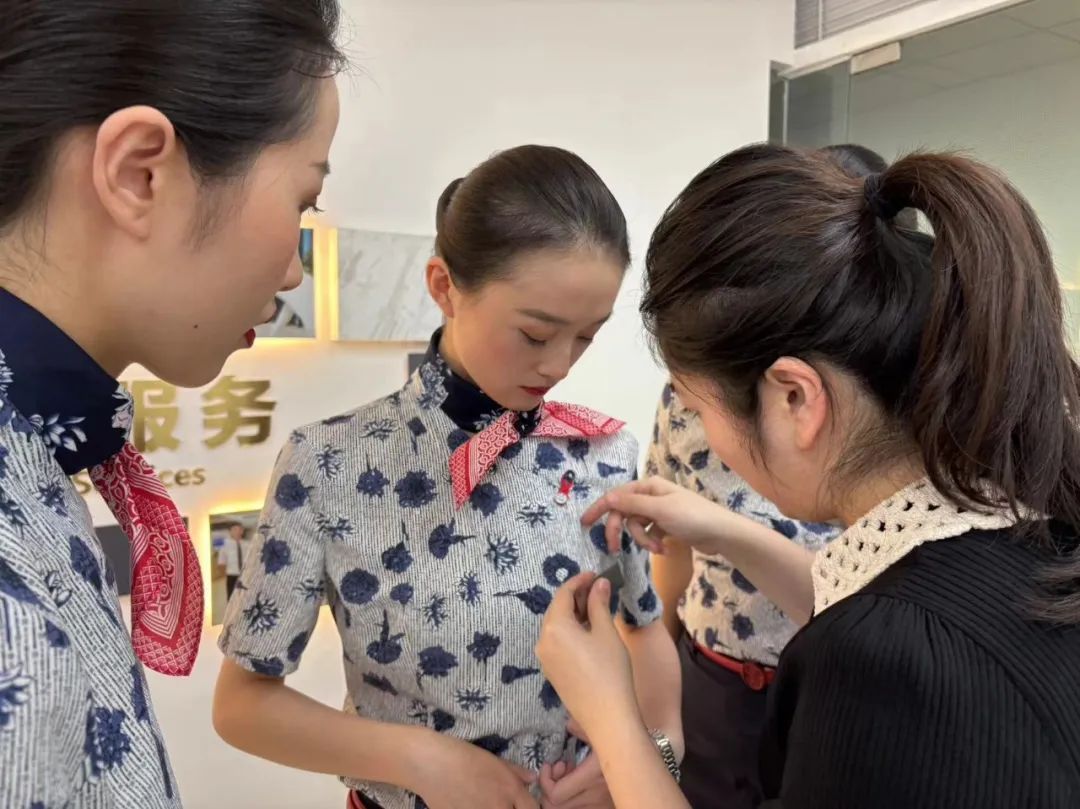 折领花、梳发髻、理妆容、佩戴姓名牌等,事无巨细,教员手把手教,学员全神贯注学,满满的仪式感,从这一刻起,她们已融入空乘的大家庭,将传承和续写东航江西客舱人的新篇章!