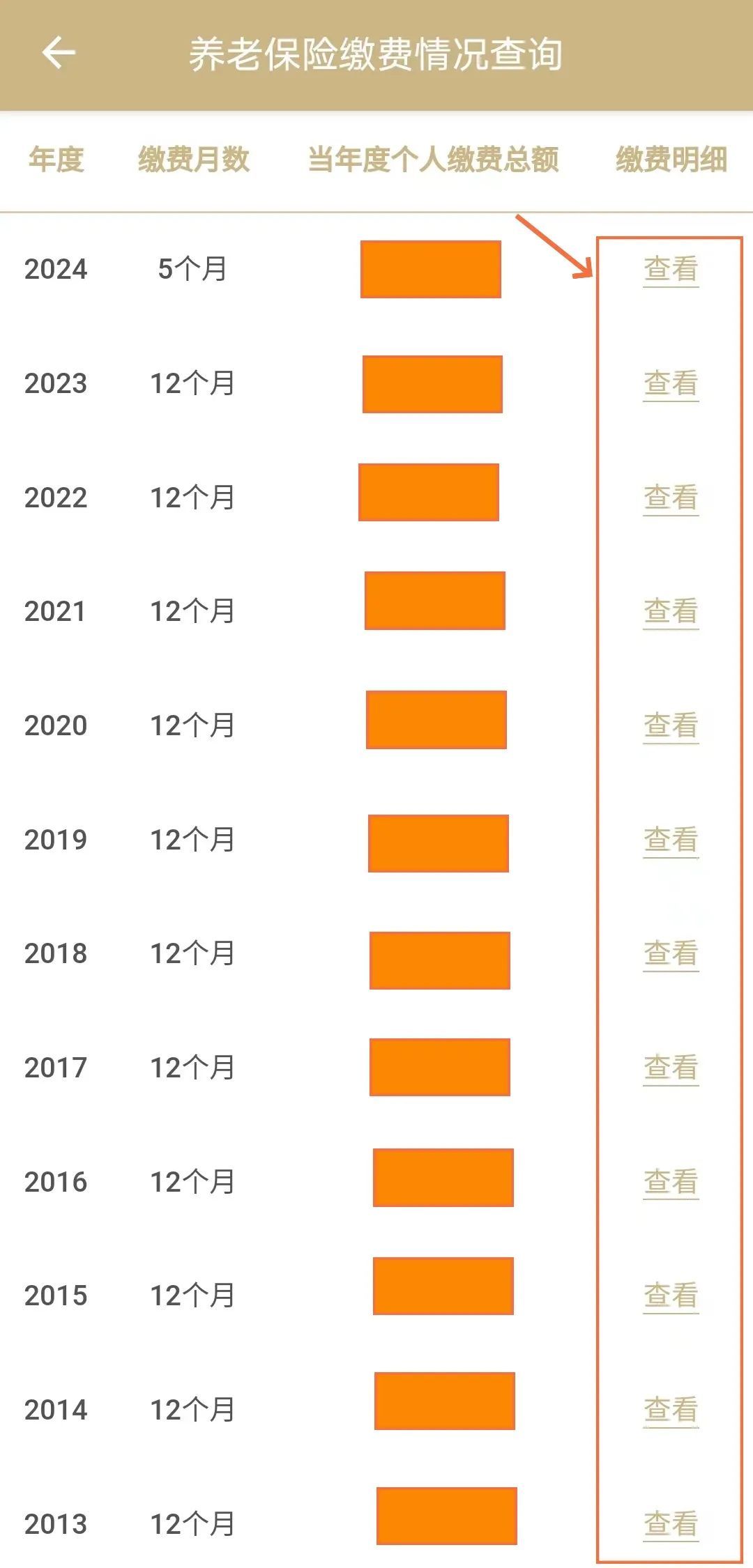 如果您想继续了解历年的详细信息,可以点击“养老保险缴费情况查询”,查看历年缴费记录。