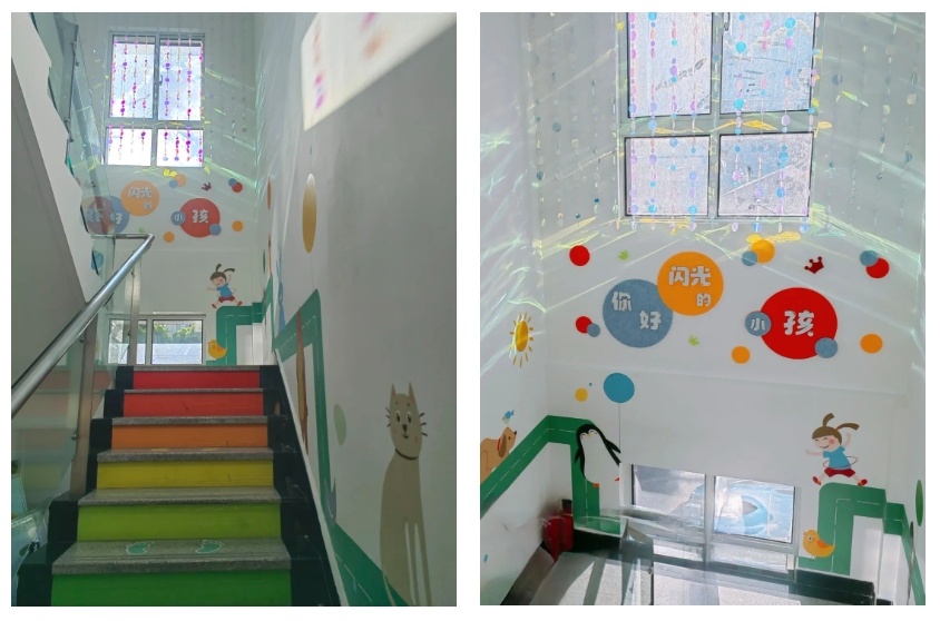 拾级而上,多彩的楼梯以及可爱的动物图案,将楼道装点得妙趣横生。推开移门,映入眼帘的便是一个独特的科普阅读世界。