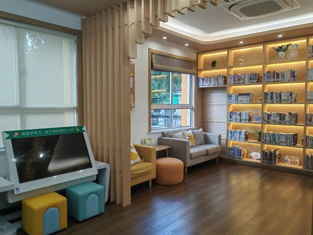左侧则是专为3至12岁儿童设计的爱阅启智阁,拥有舒适的靠垫与超大书桌,为孩子们提供了一个自在写写画画、自习阅读的温馨天地。