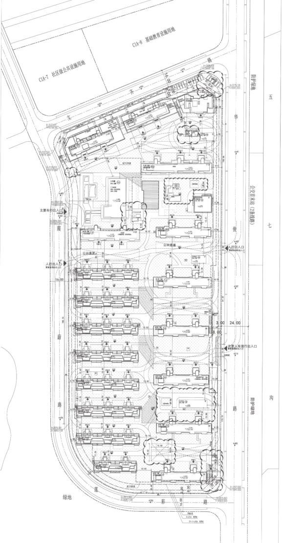 6.根据景观优化设计,调整总图路形,调整绿化布置;