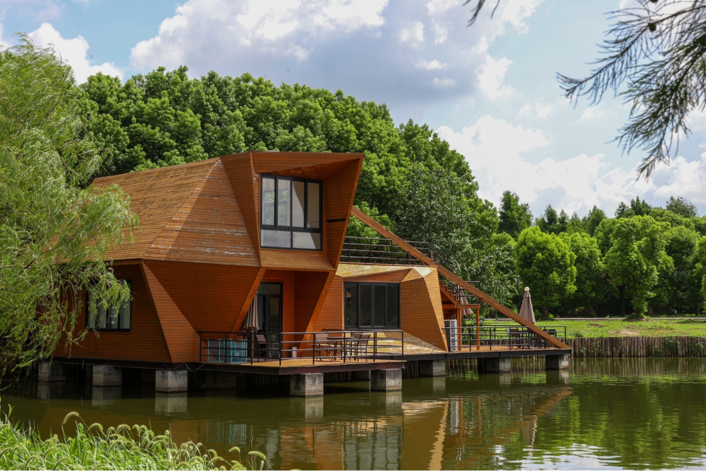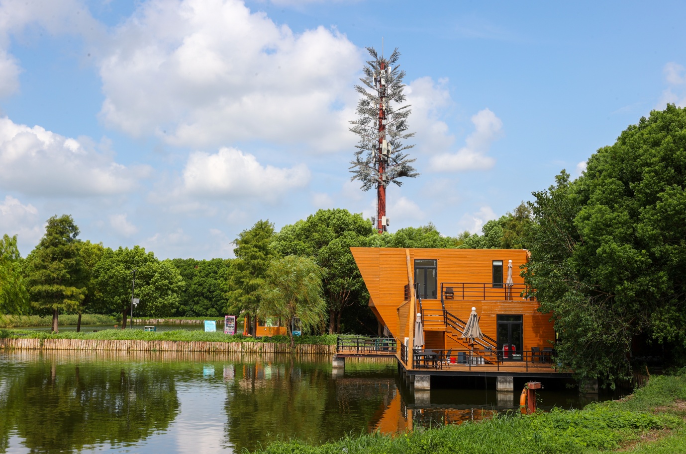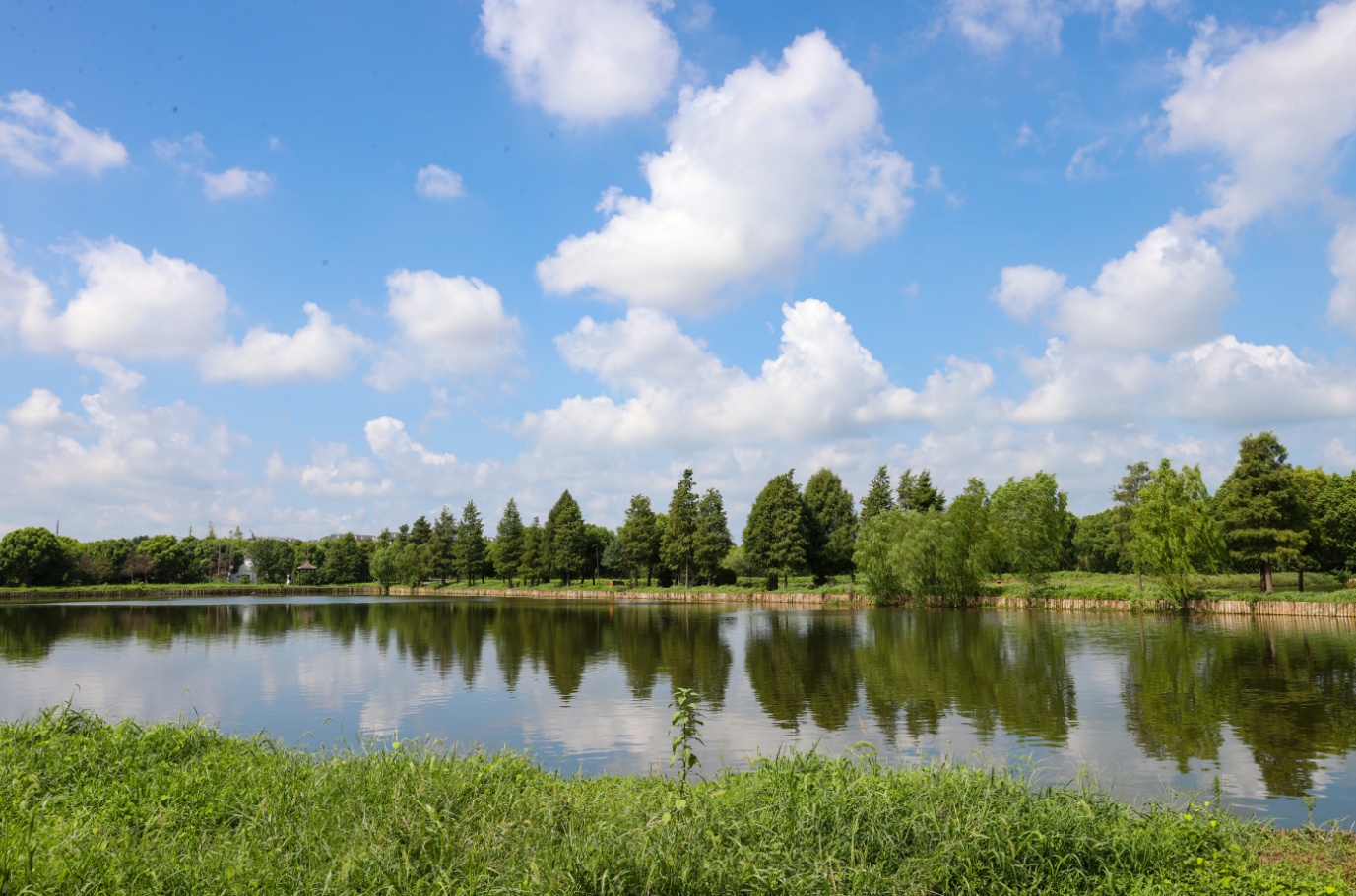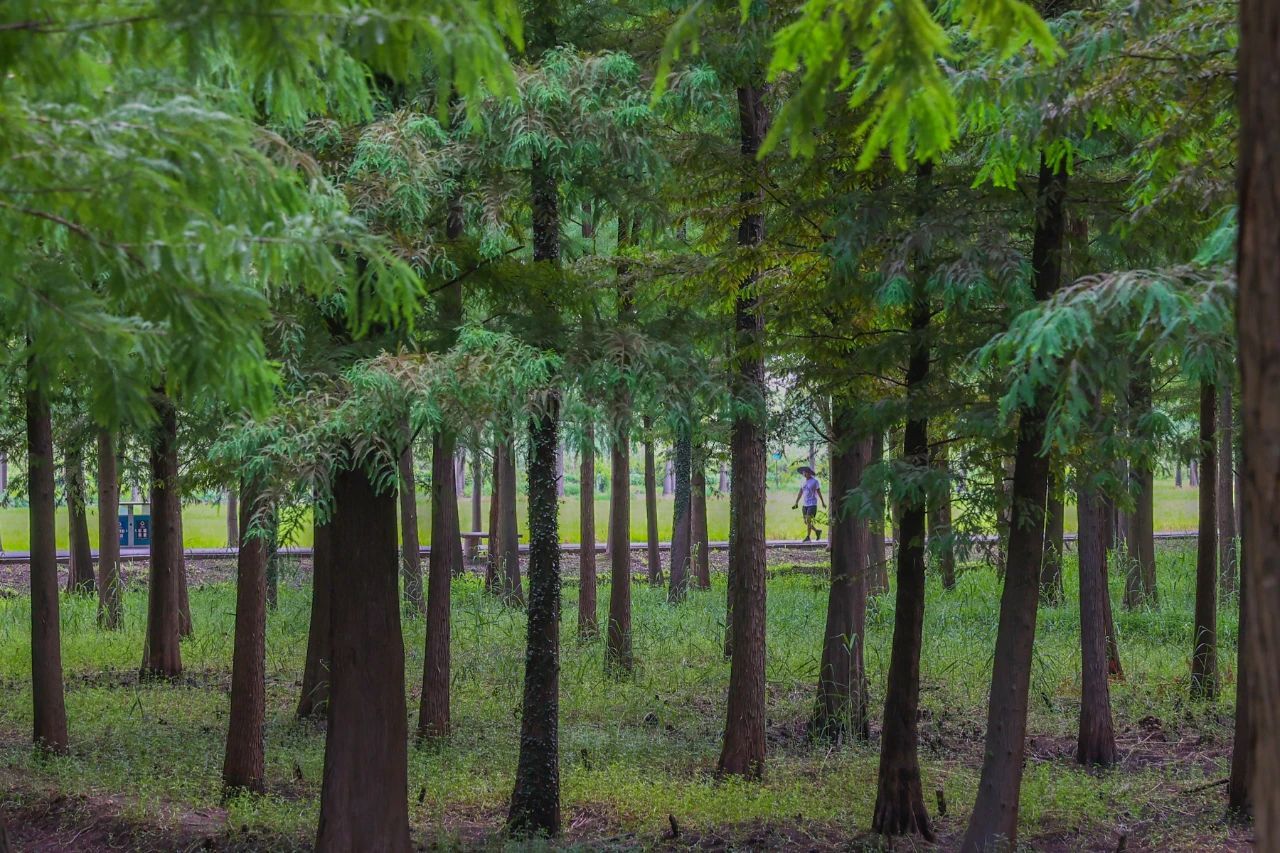公园以农耕生态自然景观为基础,形成农园采摘、果林风光、湿地渔村、露营基地四大区域板块,集合了文化展览、房车露营、采摘、垂钓、观光漫步等综合游憩功能。公园内,水杉树郁郁葱葱,河面碧波荡漾,两岸绿树成荫,满眼的翠绿让人心旷神怡,是家庭周末出游的好去处。