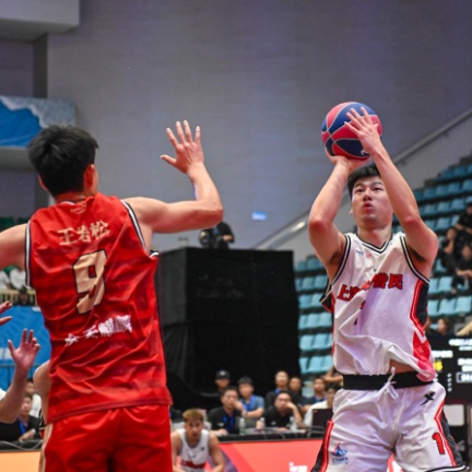 竞技体育是残酷的。下一回合的无功而返,已经注定了深圳龙华启航队的憾负。再次开球之际,深圳龙华启航队队员直接远距离出手,试图改写定局;然而经验同样老到的重庆黔江峡谷城队已经将出手空间限制死,篮球在干扰下高高飞起。整场比赛落幕。
