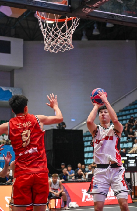 时间来到晚上19:00,半决赛第一场拉开战幕,小组赛A组头名的东道主、上海横沙誉民队对上B组第二的重庆黔江峡谷城队,全力争夺一个打进决赛的机会。事关晋级,两支强队都不再保留,一上来就是全力以赴、针锋相对。整场比赛下来,横沙誉民队共拿下19分,其中1分球11个、2分球3个,另有罚球2分入账;外援卡梅隆选手更是延续了内线的统治力,9投8中砍下10分。另一边,重庆黔江峡谷城队手感火热,内线受限就发挥远射优势,整场投入1分球6个,2分球7个,另有1个罚球。最终横沙誉民队以19-21遗憾告负,重庆黔江峡谷城队惊险闯入决赛。