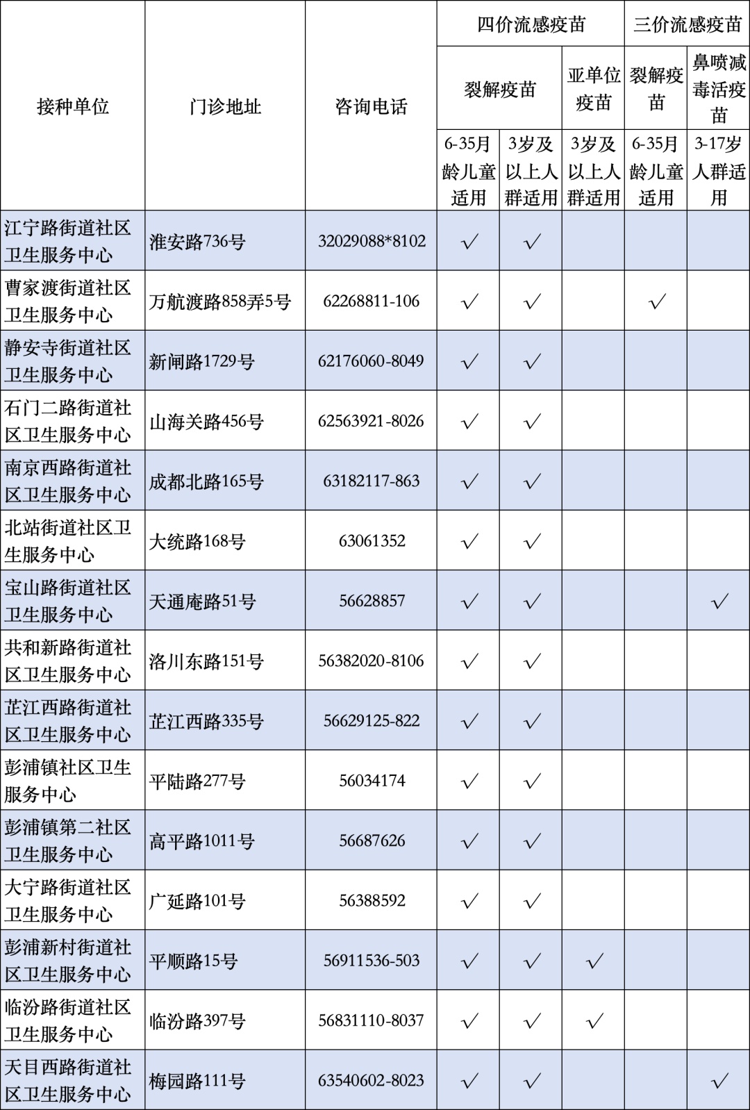 静安各社区预防接种门诊都有哪些品类的流感疫苗?