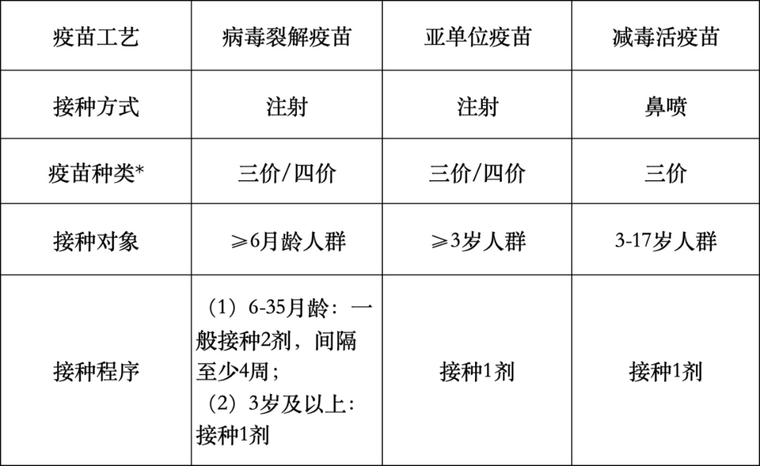 无论是流感裂解疫苗、流感亚单位疫苗还是流感减毒活疫苗,均具有良好的安全性和免疫原性,都能达到预防季节性流感的效果。