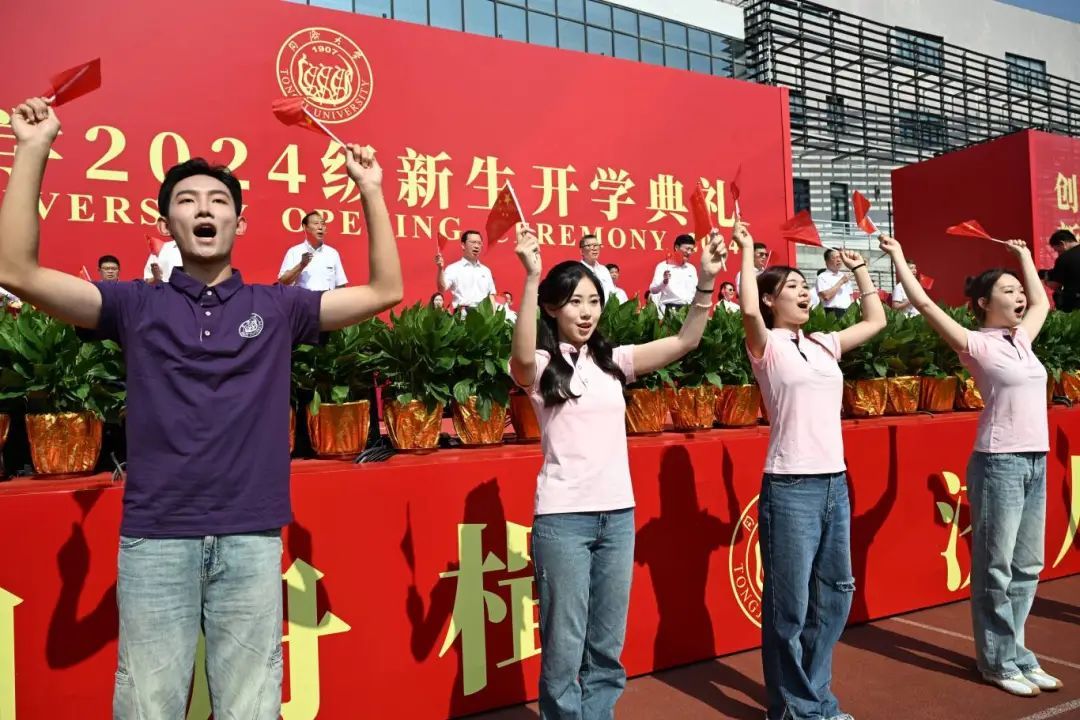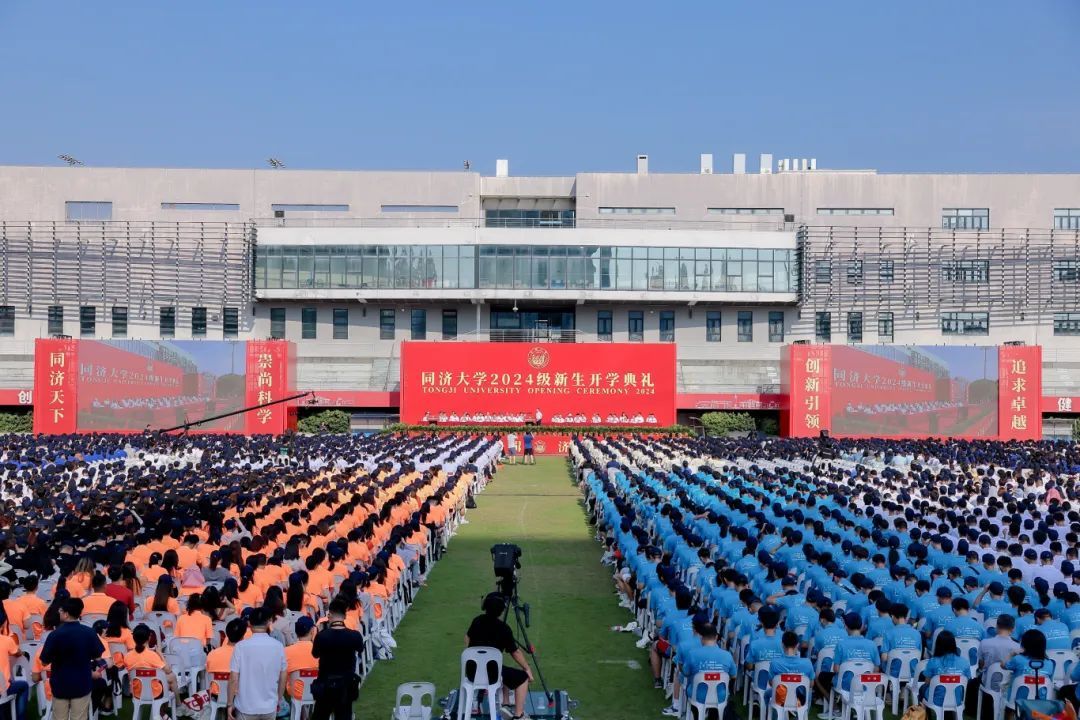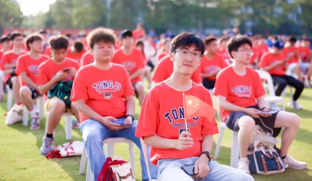 2024级同济新生身着各色文化衫,一张张青春的脸庞洋溢着自信的笑容,场面蔚为壮观。