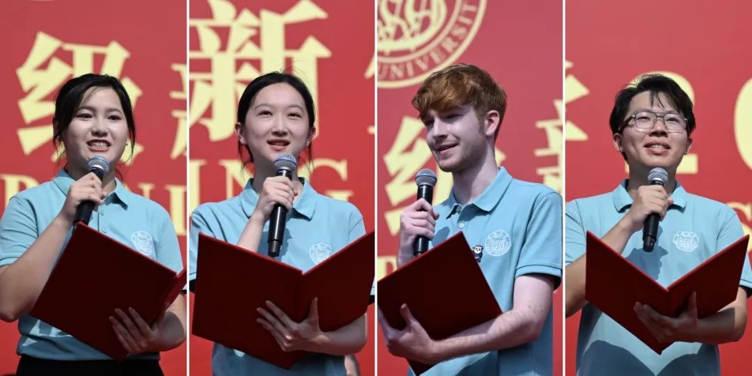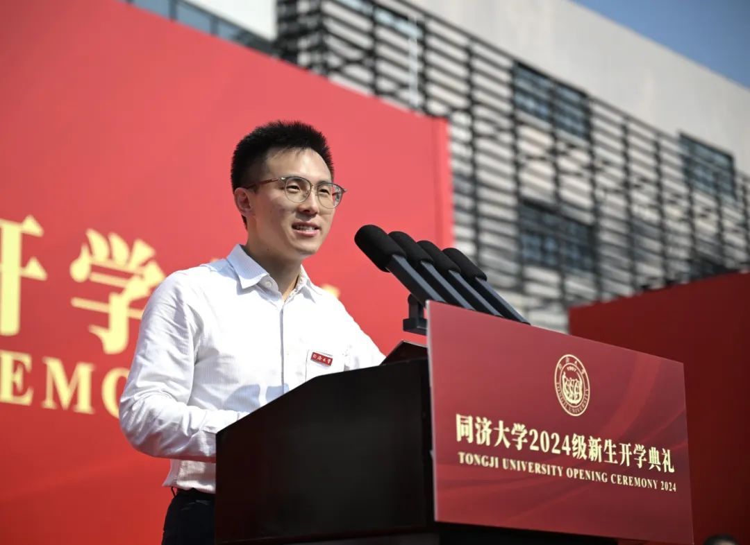 “作为国豪书院的一分子,我会带着‘成大才’的理想抱负,以李国豪老校长的事迹激励自己奋发前行。”“七年里,我在同济不断成长,站在新的起点,我们誓用同济所学服务家国天下。”“与古老的中国文明奋楫同舟,在美丽的同济校园孜孜不息,我坚信这是我继续深造的理想之地。”“心系祖国万水千山,志在乾坤风清月明,飘扬的旗帜上镌刻着的,是我们的青春誓言。”国豪书院工科试验班2024级本科生王千懿、设计创意学院2024级博士研究生黑静好、来自英国的国际文化交流学院2024级本科生马杰明、环境科学与工程学院2022级硕士研究生俞锦鹏分别作为新生、老生代表同台朗诵,讲述各自的成长故事,抒发了挺膺担当、唱响新时代青春之歌的共同心声。