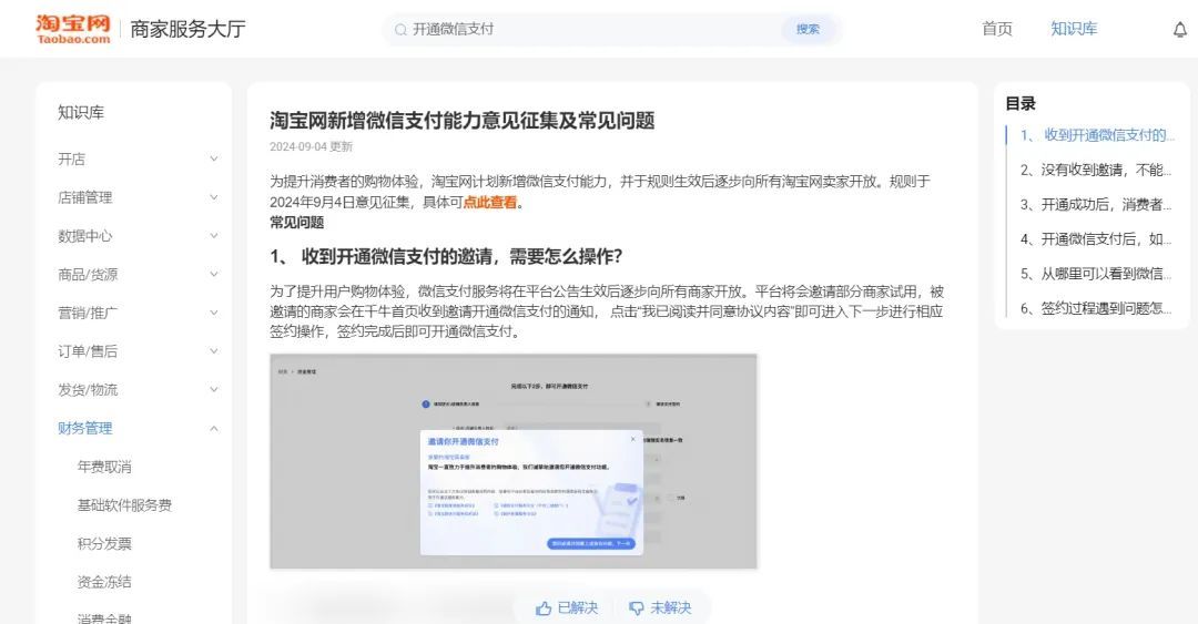 截至当晚8点,记者测试发现,手机版淘宝的支付选项里还未出现微信支付选项。淘宝官方客服对此回复称,“目前正在分批邀约商家开通微信支付中。”同时,在商家服务大厅的相关页面上已有介绍,微信支付能力将逐步向所有淘宝网卖家开放。