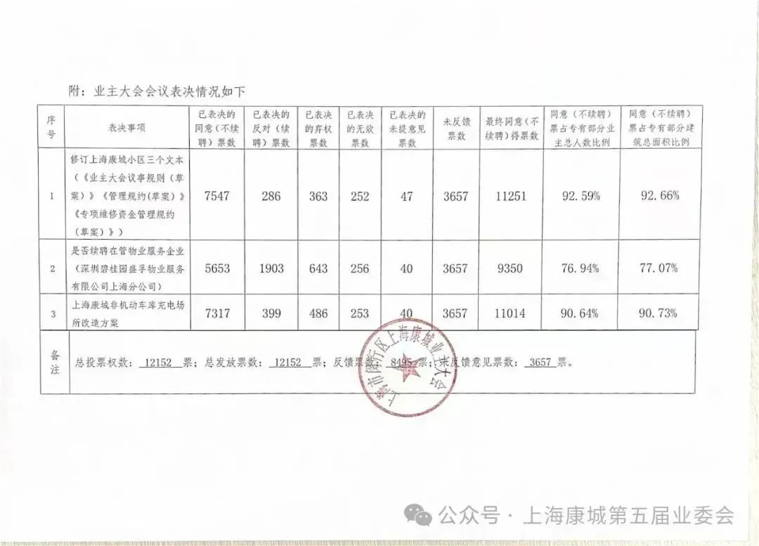 记者注意到,此次投票结果显示,同意不续聘的票数占专有部分业主总人数的近76.94%,占专有部分建筑总面积的77.07%,显示了业主们对在管物业服务质量的不满和更换物业的强烈意愿。