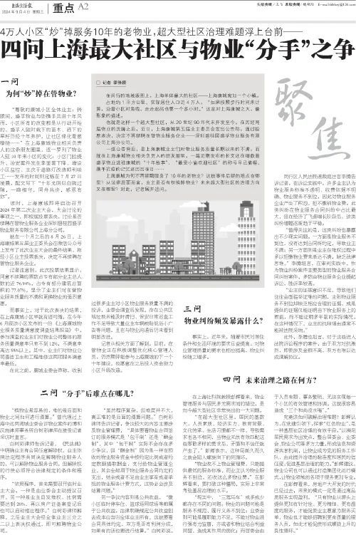 记者从相关方面了解到,目前,在管物业正在积极调整优化核心管理人员,仍然期待能参与上海康城的下一个十年建设,也愿意在之后投入资金助力小区升级改造。