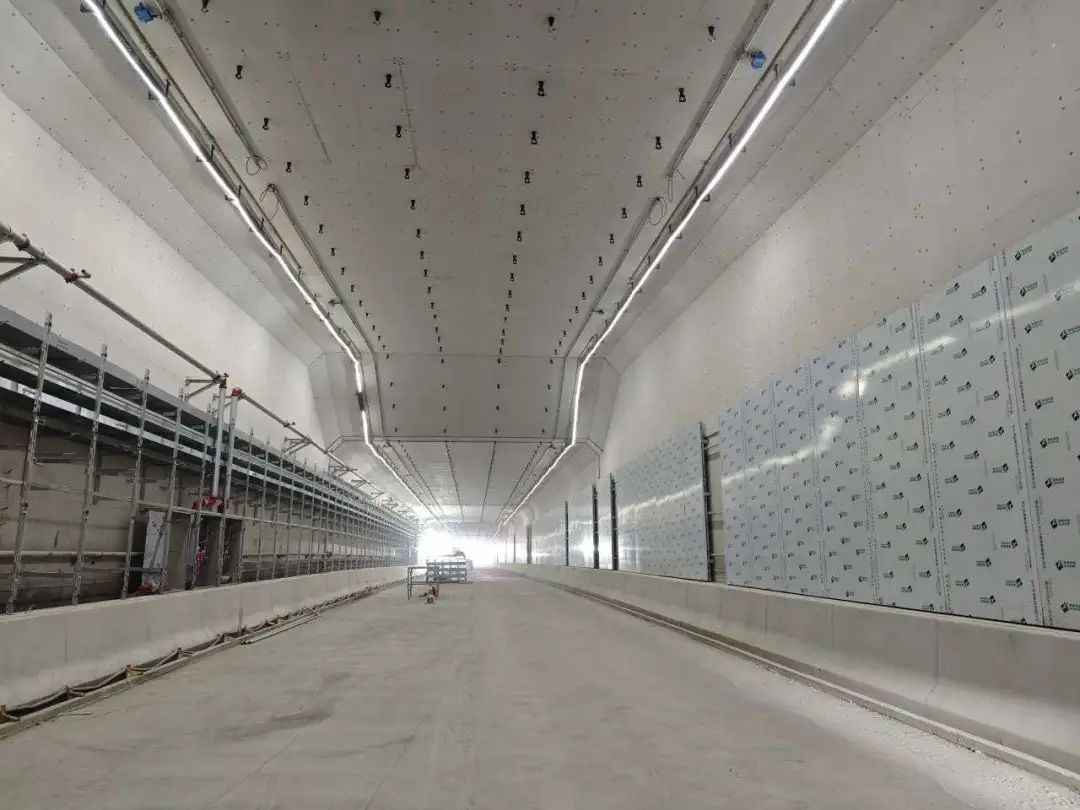 与此同时,南线隧道防火板、装饰板龙骨已安装完成,各机电系统管道也在紧张有序地安装中。