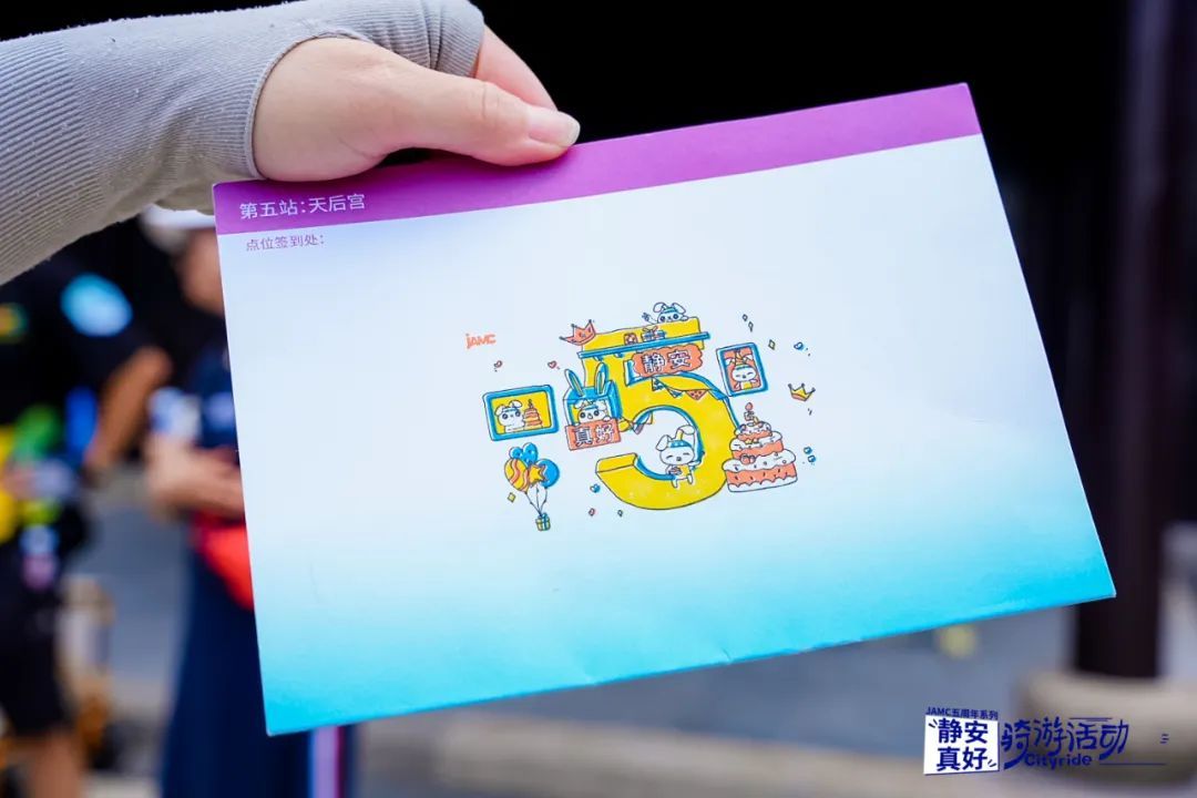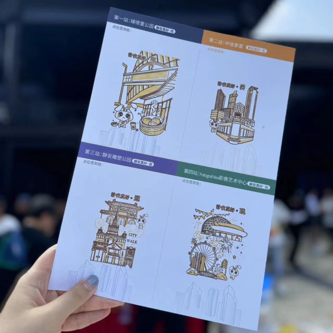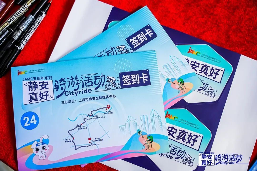 “静安真好·”系列印章可谓是这次骑行活动的又一个惊喜彩蛋!静宝在每个骑行打卡点,都设计了不同主题的特色印章,还为骑友们定制了活动集章卡!