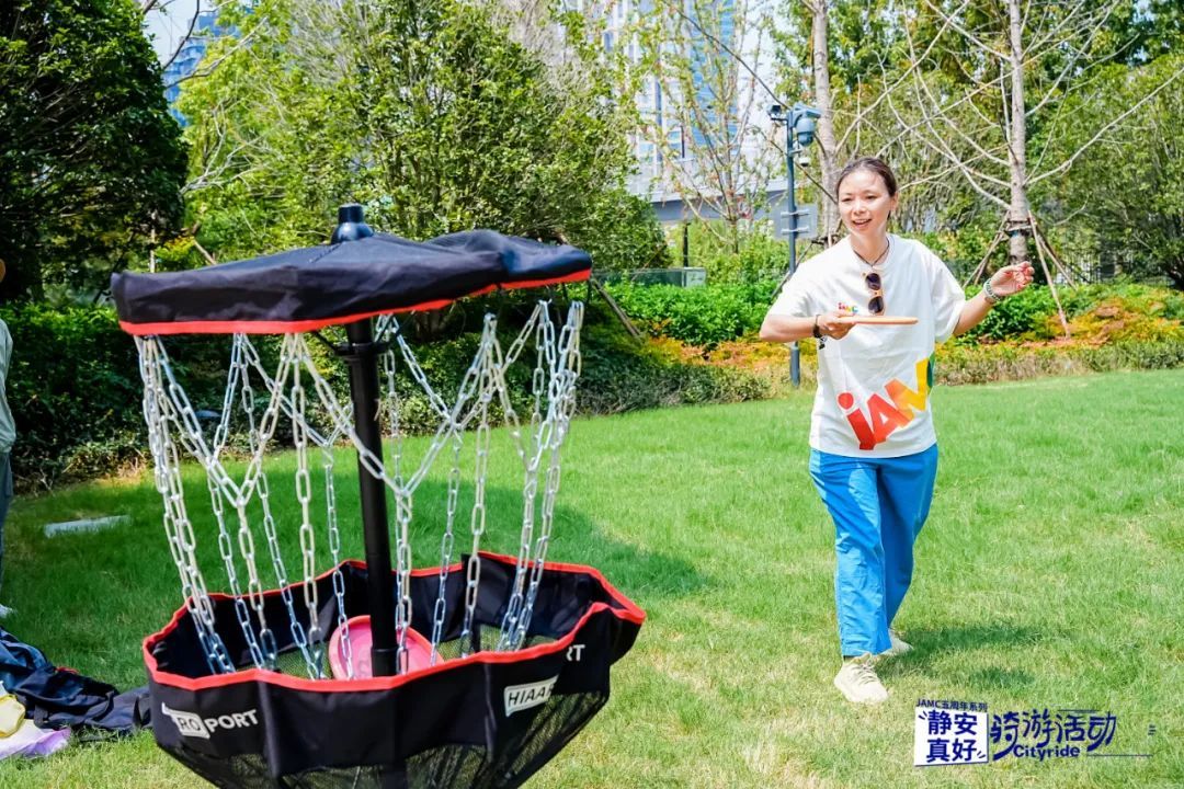 每到一处,骑友们纷纷驻足,热情打卡,拍照留念。在终点天后宫,骑友们还参与了活动“彩蛋”——“飞盘高尔夫”,该项目老少皆宜,趣味性强,是近年发展最快的新兴运动之一。