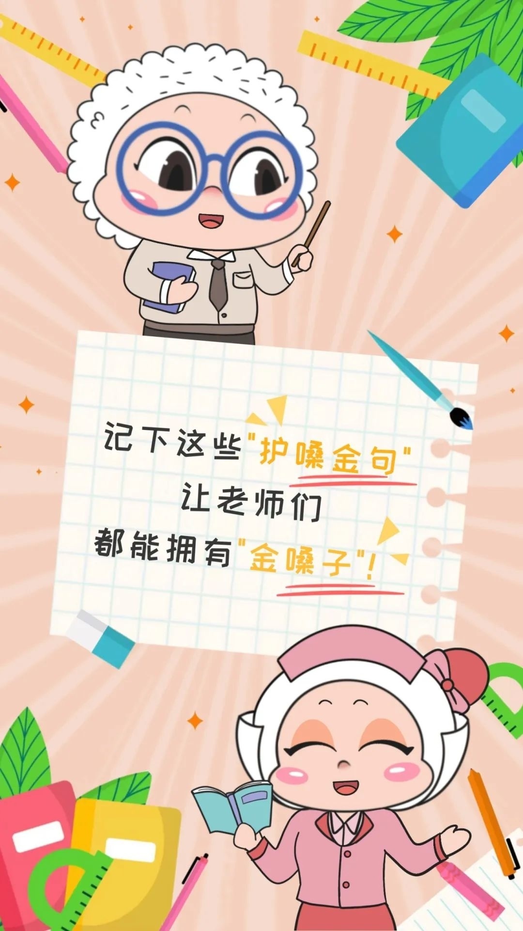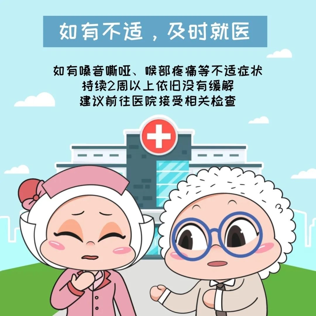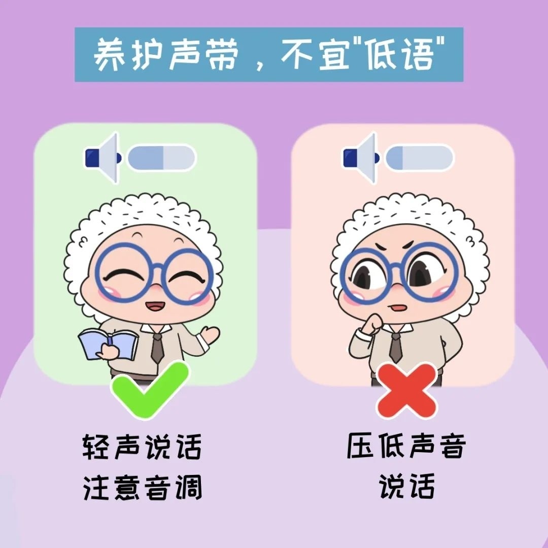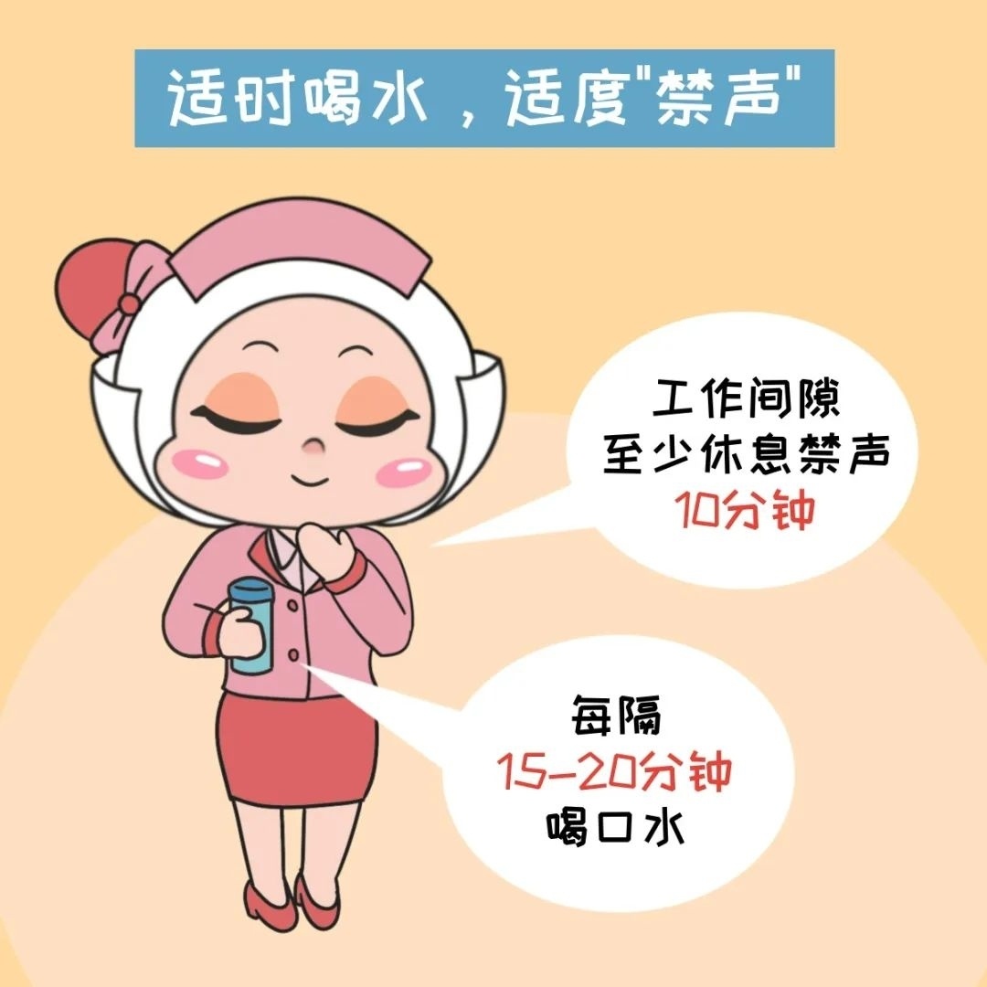 教师是嗓音病的高发人群,主要与说话“频率高”“音量高”等过度用嗓相关,通常表现为声音嘶哑、无力,甚至发声困难。 如何保护老师们的嗓子? 适时喝水,适度“禁声” 日常中,为保护声带,建议每隔15-20分钟喝口水,工作间隙至少休息禁声10分钟。 如果声带已受损,避免吃冷饮或喝冰水。 非工作时间尽量少说话,避免声带过度疲劳再受刺激。 良好作息,减轻“负担” 不良生活习惯对咽喉健康极其不利。 当声带疾病处于急性发作期,可通过生活行为方式改变,减轻咽喉负担。 避免烟酒,不吃辛辣刺激和引起胃反酸的食物,不喝浓茶、浓咖啡,以避免对咽喉的刺激。 多喝水,多吃新鲜瓜果蔬菜。 充足睡眠,规律作息,加强锻炼,保持轻松。 居室空气流通,尽量回避污染、嘈杂的环境。 呵护喉肌,避免“清嗓” 声音嘶哑通常在喉肌疲劳情况下发生。 教师作为职业用声者,尤其需要保证喉部肌肉的规律休息。 一些老师习惯清嗓,咳掉喉中的痰,以此使声音更加清晰。 殊不知,这个动作会让声带瞬间严重拉紧,造成声带损伤。 慢性咽炎时,舌根淋巴滤泡会有增生肥厚,会造成局部有“痰”的错觉。 如果痰确实较多,用胸部肌肉的力量将其咳出。 养护声带,不宜“低语” 保护嗓子应做到轻声说话,注意音调。 但是,压低声音说话,尤其耳语似地讲话,并不能帮助声带休息。 声带在非舒适状态下发音,时间一长,反而会更疲劳。 如有不适,及时就医 如果嗓音嘶哑、喉部疼痛等不适症状持续2周以上,依旧没有缓解,建议前往医院检查,及早诊治,恢复健康。 资料:沪小康 编辑:刘家园