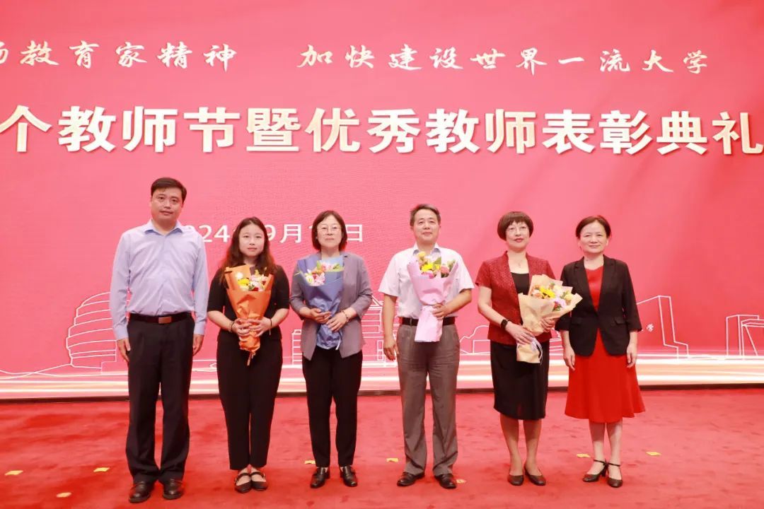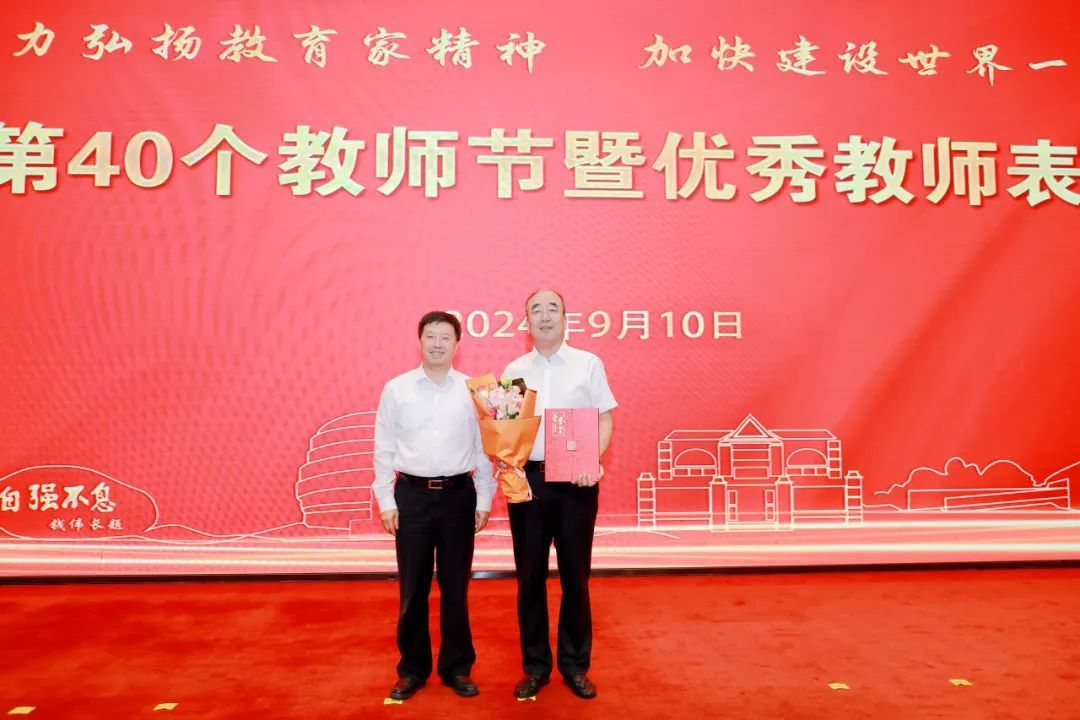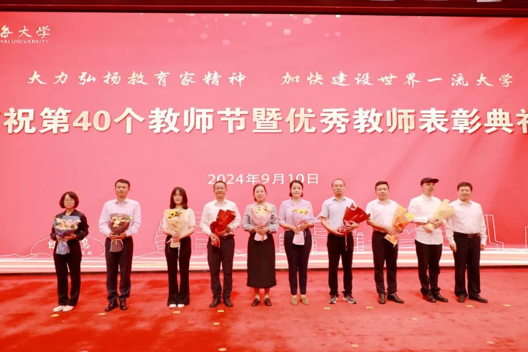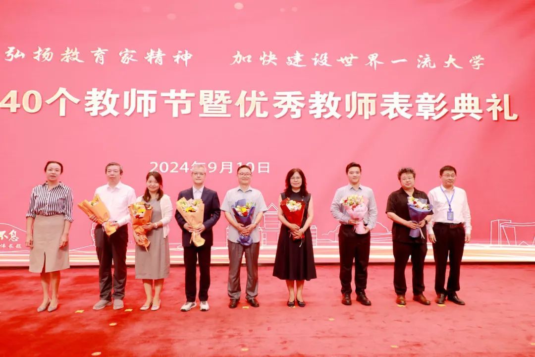 成旦红表示,上海大学自建校以来,涌现出一批又一批优秀教师代表,体现出使命担当强、专业素养高、创新思维活、奉献品格优的共同精神特征。他希望,全校教师要心怀“国之大者”,涵养高远之境,作为“中国共产党主导创办并实际领导的第一所正规大学”,以更加强烈的使命感和责任感,将“为党育人、为国育才”的初心使命转化为生动的办学实践;要聚焦“以文化人”,厚植价值之基,将知识学养与道德修养统一起来,以高尚的师德师风立德树人、塑造新人,在全校形成“人人有导师、人人做导师”的浓厚氛围,每位教师要努力实现人生出彩;要秉持“求真务实”,增进育人智慧,深刻把握育人规律与学生成长规律,真正做到研究真问题,求得真学问,助力人才自主培养质量提升,服务高水平科技自立自强;要拥抱“教育改革”,永葆创新活力,要拿出“闯”的精神、“创”的劲头、“干”的作风积极拥抱教育综合改革,共享创新成果,促进教育质量提升。他强调,站在新起点,展望新征程,全校教师要以党的二十届三中全会和十二届市委五次全会精神为指引,认真学习贯彻全国教育大会精神,全面落实学校第四次党代会的部署安排,把教育家精神内化为教育教学的能力,为把上海大学建设成为“中国特色、世界一流”大学而不懈奋斗!