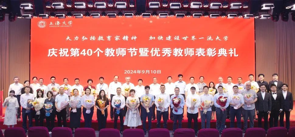 教师是立教之本、兴教之源。强国必先强教,强教必先强师。9月10日下午,上海大学庆祝第40个教师节暨优秀教师表彰典礼在宝山校区图书馆报告厅举行。典礼分“躬耕教坛、爱生如子”“强基筑峰、群英竞秀”“守正创新、追求卓越”“薪火相传、桃李天下”四个篇章,表彰了学校在教书育人、科研创新等领域涌现出的优秀教师代表和团队代表,致敬从教四十年教师代表,并启动“师德师风建设月”系列活动。
