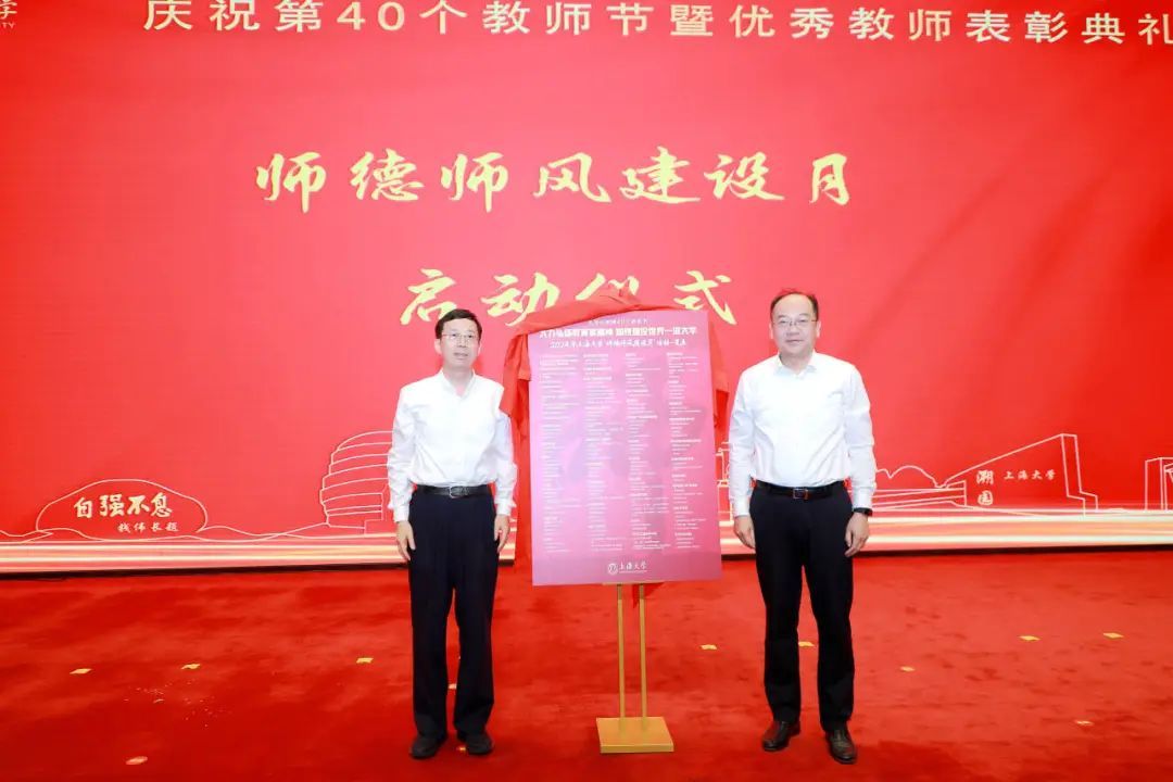 校党委副书记段勇,党委副书记、纪委书记周建军共同为我校2024年“师德师风建设月”活动安排揭幕,宣布2024年上海大学“师德师风建设月”正式启动。