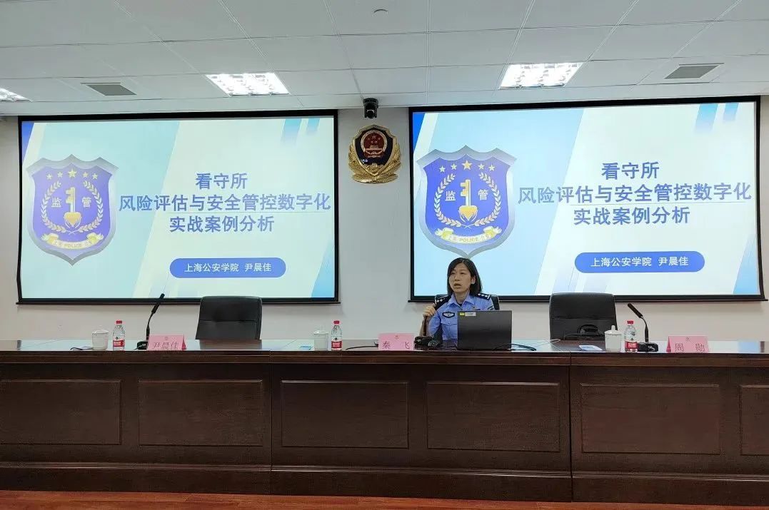 上海公安学院监所管理教研室秦飞主任、尹晨佳教官介绍公安系统专业课程建设及公安部部级精品课程的研发与设计,并赴奉贤区看守所开展现场教学。